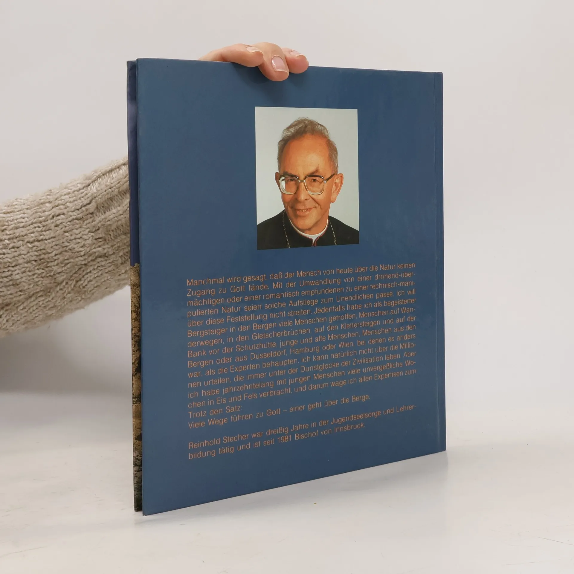 „Viele Wege führen zu Gott, einer geht über die Berge.“ (Reinhold Stecher) Manchmal wird gesagt, dass der Mensch von heute über die Natur keinen Zugang zu Gott fände. Mit der Umwandlung von einer drohend – übermächtigen oder einer romantisch empfundenen zu einer technisch – manipulierten Natur seien solche Aufstiege zum Unendlichen passé. Reinhold Stecher hat jahrzehntelang mit jungen Menschen viele unvergessliche Wochen in Eis und Fels verbracht, und darum wagt der Autor allen Expertisen zum Trotz diesen obigen Satz. „Prachtvolle Farbfotos aus der Bergwelt sind begleitet von Texten, die die Symbolik dieser Erlebnisse in Worte kleiden.“ (ORF, Wien) „Es gibt Bücher, die fesseln, die interessieren, die belehren, und solche, die alles in allem sind und damit beglücken. Ein solches Buch ist die ‚Botschaft der Berge‘. Es sitzt jedes Wort und jeder Satz, jede Beobachtung und jede Schlussfolgerung.“ (Sonntagsblatt Stmk.) “Das Buch ist ein Ausdruck der tiefen Überzeugung, dass auch in unserer technisierten Welt das ‚Erlebnis Natur‘ zum ‚Erlebnis Gott‘ werden kann.“ (Tiroler Tagesszeitung)