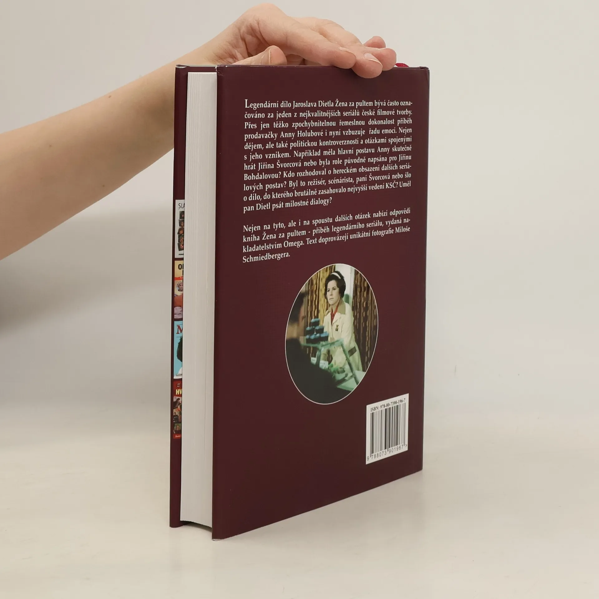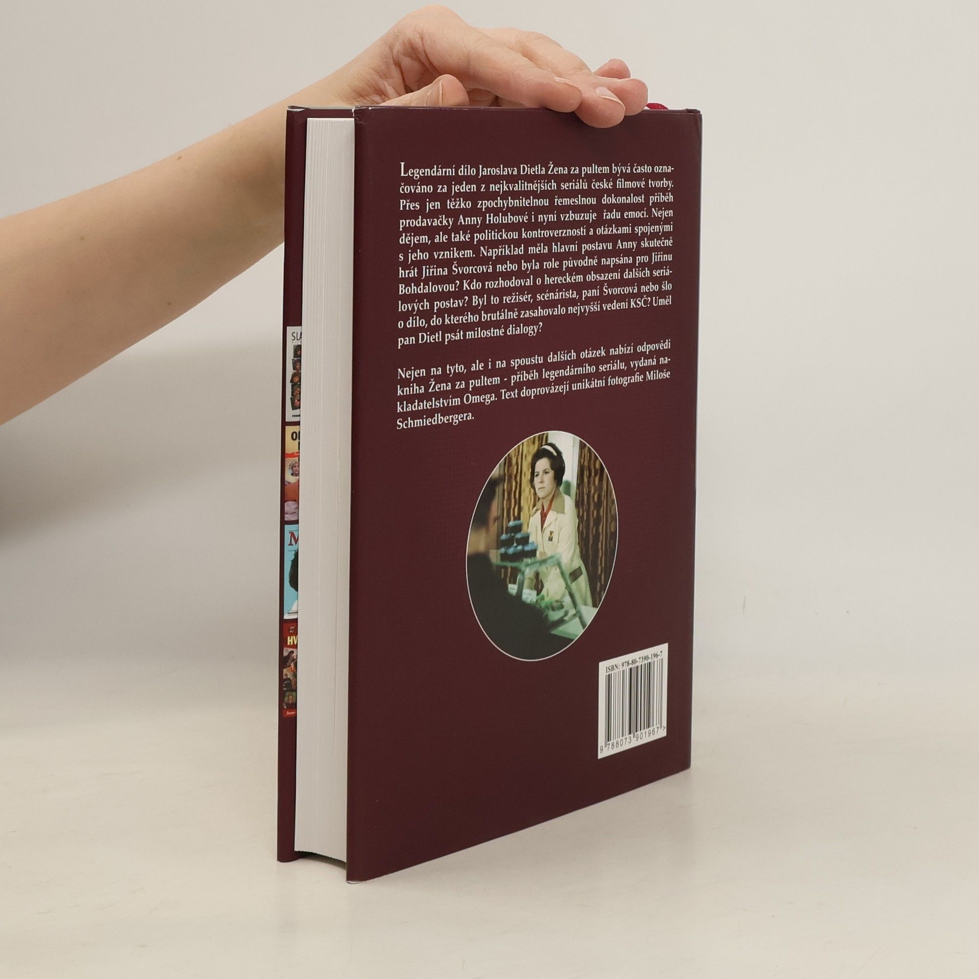 Podtitul: Příběh legendárního seriálu a jeho hrdinů Do zákulisí Ženy za pultem nahlédne nová kniha. Žena za pultem Jaroslava Dietla bývá označována za jeden z nejkvalitnějších seriálů české filmové tvorby. Příběh prodavačky Anny Holubové i nyní vzbuzuje v řadu emocí. Nejen dějem, ale také politickou kontroverzností a otázkami spojenými s jeho vznikem. Například, měla hlavní postavu Anny skutečně hrát Jiřina Švorcová, nebo byla role původně napsána pro Jiřinu Bohdalovou? Kdo rozhodoval o hereckém obsazení dalších seriálových postav? Byl to režisér, scenárista, Jiřina Švorcová, nebo šlo o dílo, do kterého brutálně zasahovalo nejvyšší vedení KSČ? Uměl pan Dietl psát milostné dialogy? I na spoustu dalších otázek nabízí odpovědi kniha Žena za pultem - příběh legendárního seriálu, vydaná nakladatelstvím Omega. Text doprovázejí unikátní fotografie Miloše Schmiedbergera.