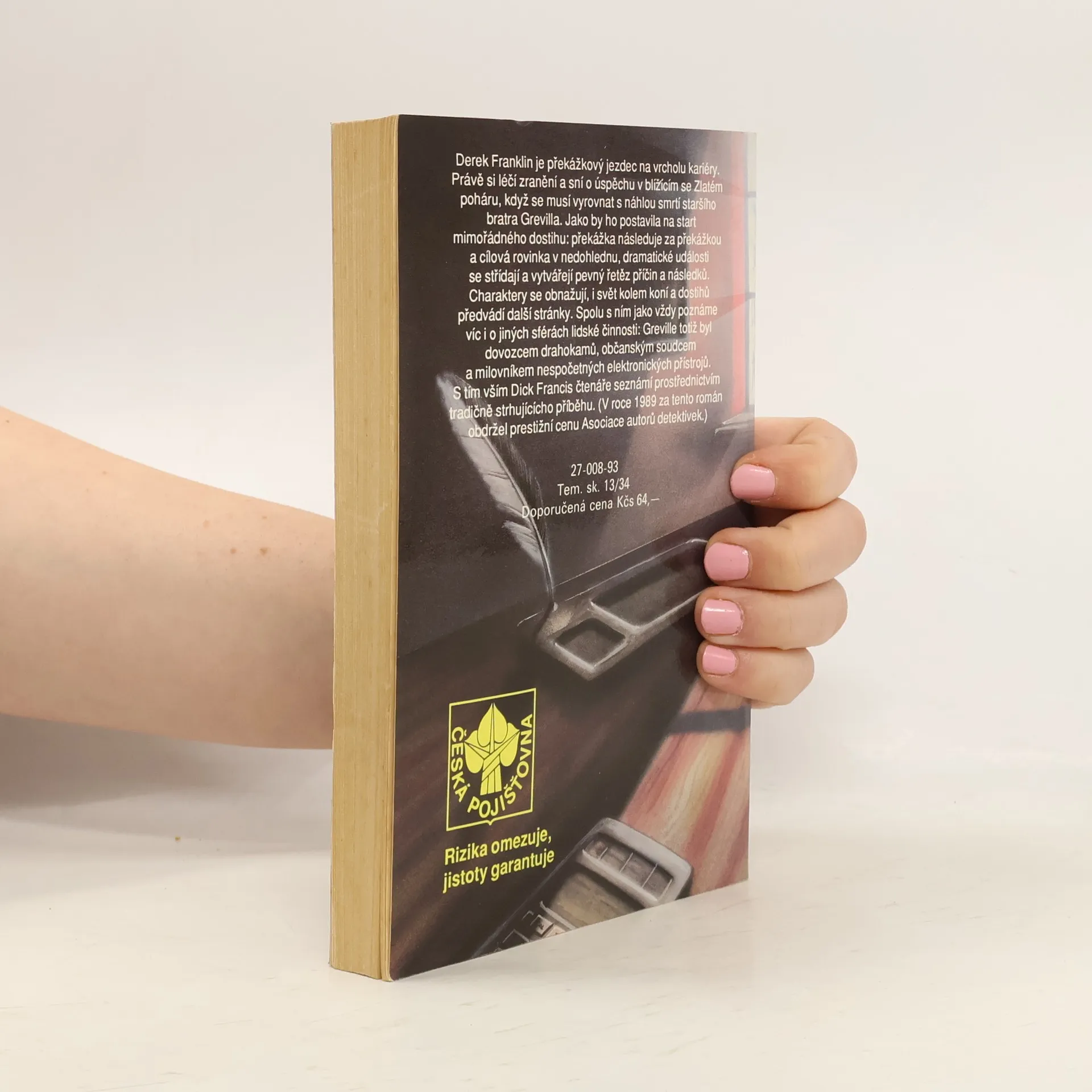 Překážkový jezdec na vrcholu kariéry Derek Franklin si právě léčí roztříštěný kotník, když se dozví, že jeho o devatenáct let starší bratr Greville umírá po těžkém úrazu. Vypraví se za ním do nemocnice, aby s ním strávil jeho poslední chvíle, a netuší, co všechno ho v nejbližší době čeká. Zdědí totiž život svého bratra, jeho psací stůl, jeho podnik pro import drahokamů, jeho zálibu v nesčetných přístrojích a hlavolamech, jeho milenku, koně, ale také jeho nepřátele, kteří ho málem o Grevillův podnik připraví. Teprve v cílové rovince tohoto mimořádného dostihu se rozhodne, jestli neztratí svůj život a zda sám obstojí se ctí.