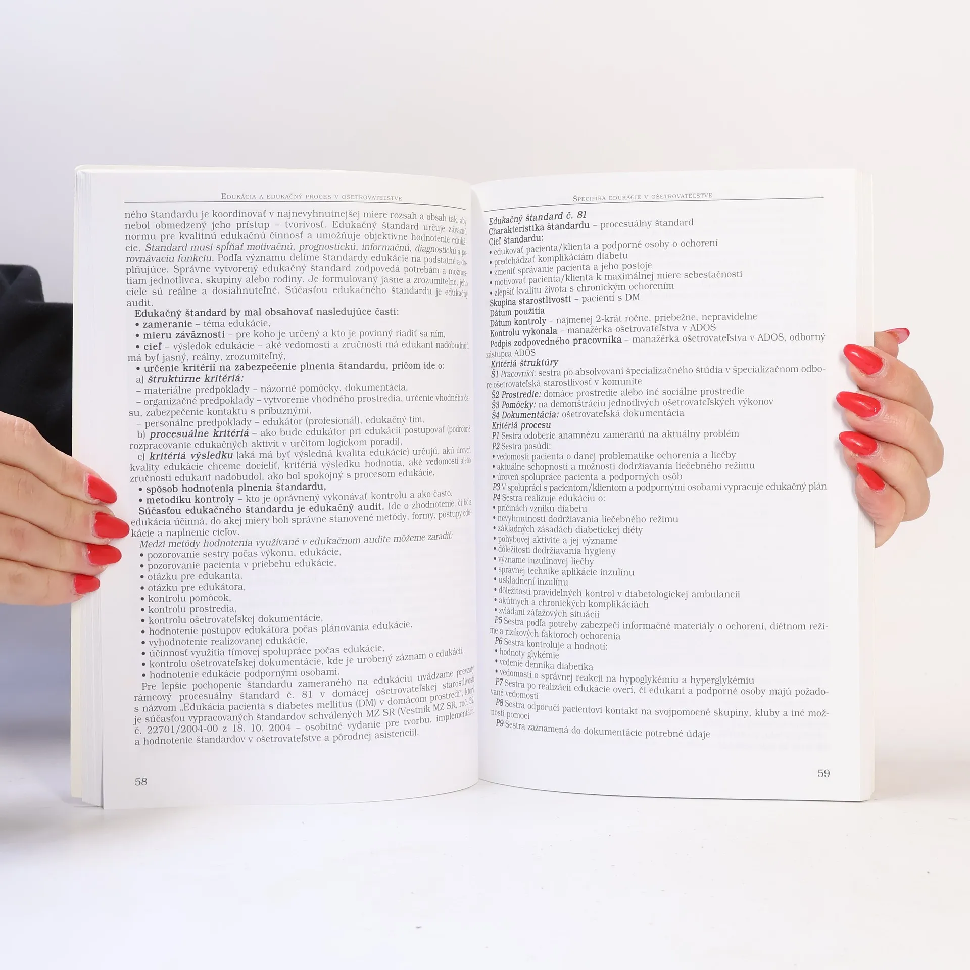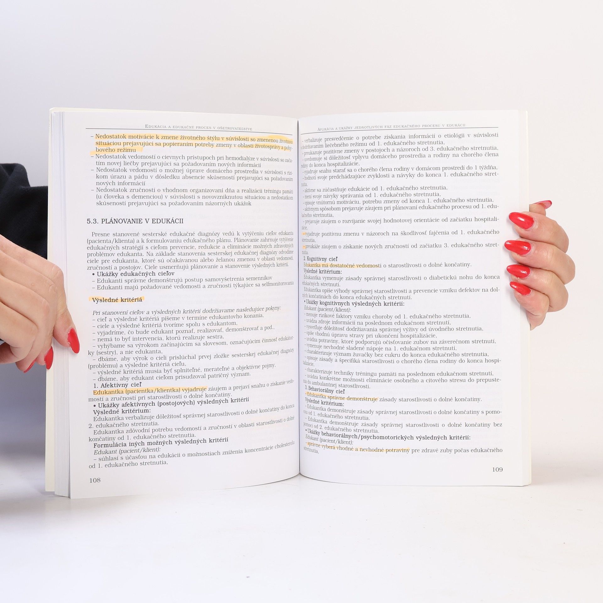 Edukácia v ošetrovateľstve sa uskutočňuje prostredníctvom edukačného procesu, ktorý zahrnuje poskytovanie zdravotnej starostlivosti pri podporovaní, udržiavaní a prinavrátení zdravia, prevencii chorôb, diagnostike, liečbe a ošetrovaní, pričom sestry pracujú metódou ošetrovateľského a edukačného procesu. Edukačný proces vyjadruje dynamický vzájomný vzťah medzi sestrou a jedincom, jeho rodinou alebo komunitou. Monografia, ktorú čitateľovi predkladáme, poskytuje najnovšie poznatky z oblasti edukácie vo sfére primárnej, sekundárnej a terciárnej prevencie a ošetrovateľskej starostlivosti. Vychádza z odporúčaní Svetovej zdravotníckej organizácie, ako aj z platnej legislatívy Slovenskej republiky v súvislosti s poskytovaním odbornej a kvalifikovanej zdravotnej starostlivosti. Publikácia je venovaná najmä pedagógom a študentom nelekárskych zdravotníckych odborov.