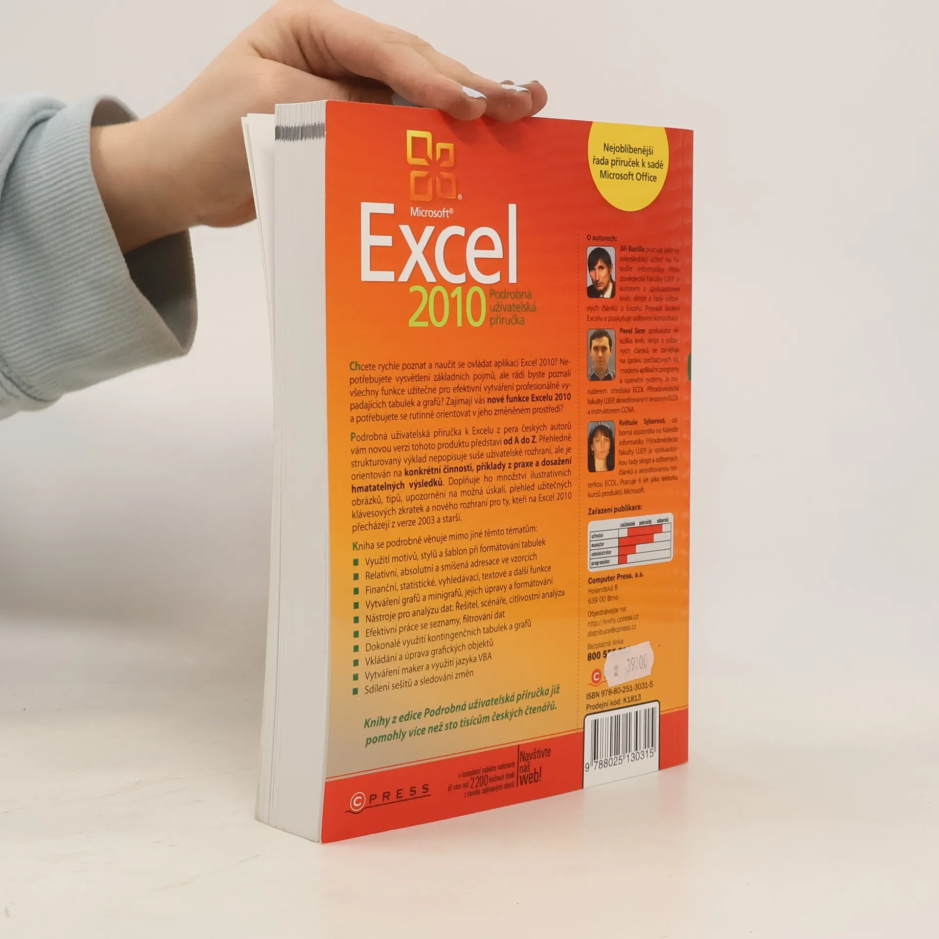 Chcete rychle poznat a naučit se ovládat aplikaci Excel 2010? Nepotřebujete vysvětlení základních pojmů, ale rádi byste poznali všechny funkce užitečné pro efektivní vytváření profesionálně vypadajících tabulek a grafů? Zajímají vás nové funkce Excelu 2010 a potřebujete se rutinně orientovat v jeho změněném prostředí? Podrobná uživatelská příručka k Excelu z pera českých autorů vám novou verzi tohoto produktu představí od A do Z. Přehledně strukturovaný výklad nepopisuje suše uživatelské rozhraní, ale je orientován na konkrétní činnosti, příklady z praxe a dosažení hmatatelných výsledků. Doplňuje ho množství ilustrativních obrázků, tipů, upozornění na možná úskalí, přehled užitečných klávesových zkratek a nového rozhraní pro ty, kteří na Excel 2010 přecházejí z verze 2003 a starší.