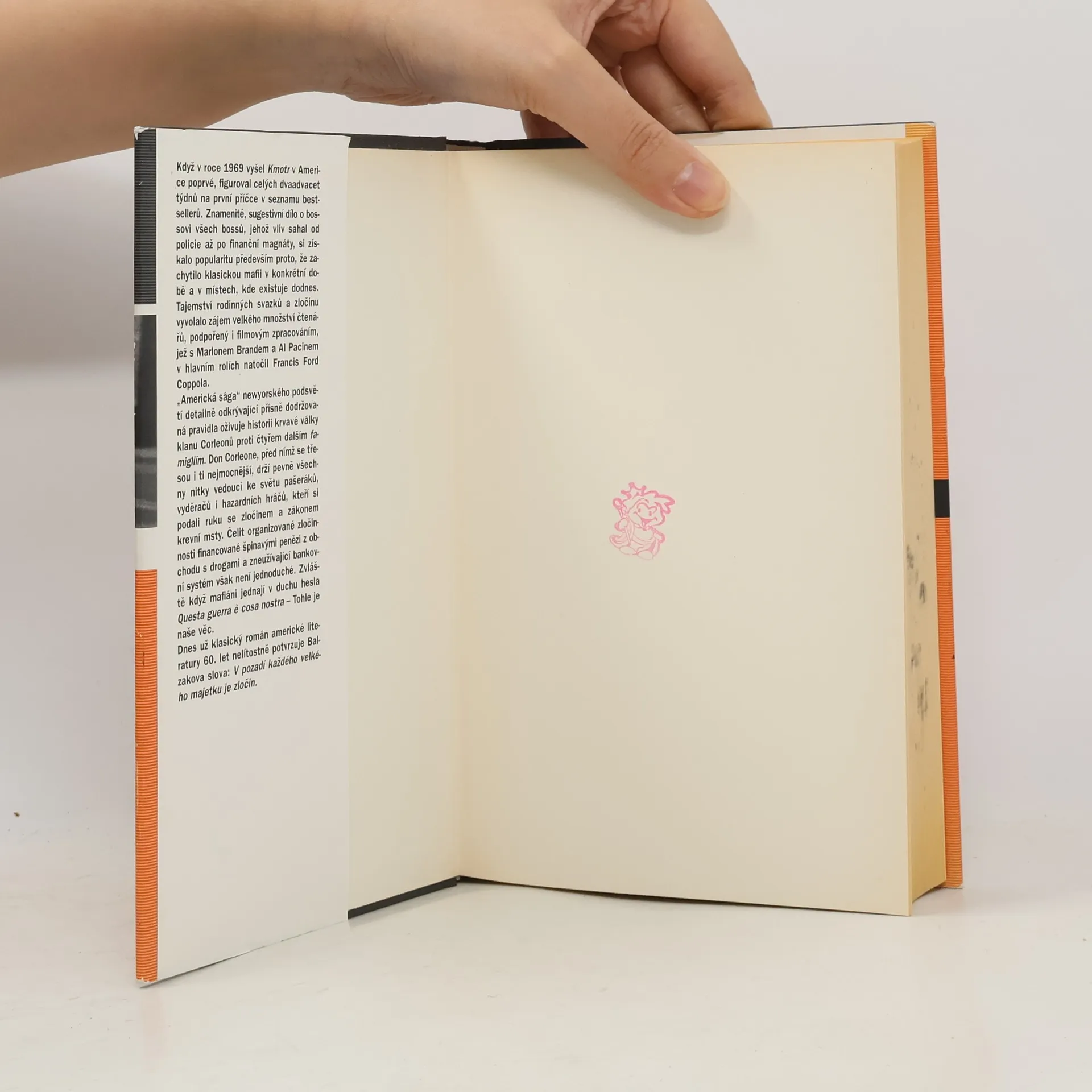 Když v roce 1969 vyšel v Americe poprvé, figuroval celých dvaadvacet týdnů na první příčce v seznamu bestsellerů. Znamenité, sugestivní dílo o bossovi všech bossů, jehož vliv sahal od policie až po finanční magnáty, si získalo popularitu především proto, že zachytilo klasickou mafii v konkrétní době a v místech, kde existuje dodnes. Tajemství rodinných svazků a zločinu vyvolalo zájem velkého množství čtenářů, podpořený i filmovým zpracováním, jež s Marlonem Brandem a Al Pacinem v hlavních rolích natočil Francis Ford Coppola."Americká sága" newyorského podsvětí detailně odkrývající přísně dodržovaná pravidla znovu oživuje historii krvavé války klanu Corleonů proti čtyřem dalším famigliím. Don Corleone, před nímž se třesou i ti nejmocnější, drží pevně všechny nitky vedoucí ke světu pašeráků, vyděračů i hazardních hráčů, kteří si podali ruku se zločinem a zákonem krevní msty. Čelit organizované zločinnosti financované špinavými penězi z obchodu s drogami a zneužívající bankovní systém však není jednoduché. Zvláště když mafiáni jednají v duchu hesla Questra guerra e cosa nostra - Tohle je naše věc. Dnes už klasický román americké literatury 60. let nelítostně potvrzuje Balzakova slova: V pozadí každého velkého majetku je zločin.... celý text