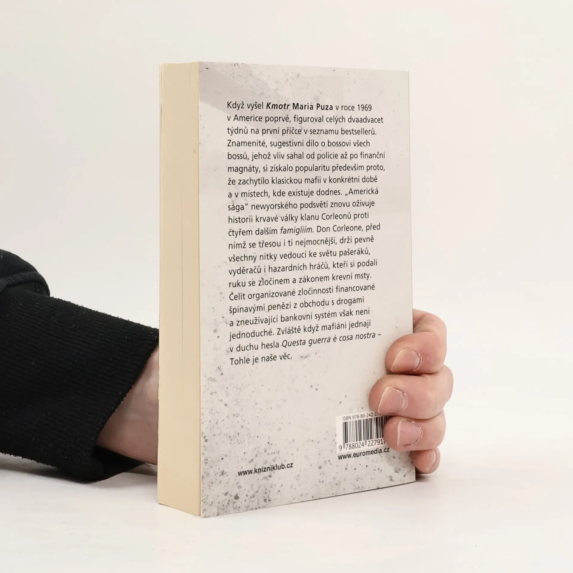 Kmotr Maria Puza, „americká sága“ newyorského podsvětí, vyšel poprvé v roce 1969 a od té doby zůstává celosvětovým bestsellerem. Autor v něm zachytil historii krvavé války klanu Corleonů proti čtyřem dalším famigliím, válku vedenou v duchu hesla Questa guerra e cosa nostra – Tohle je naše věc. Znamenité, sugestivní dílo o bossovi všech bossů, jehož vliv sahal od policie až po finanční magnáty, si získalo popularitu především proto, že zachytilo klasickou mafii v konkrétní době a v místech, kde existuje dodnes.
