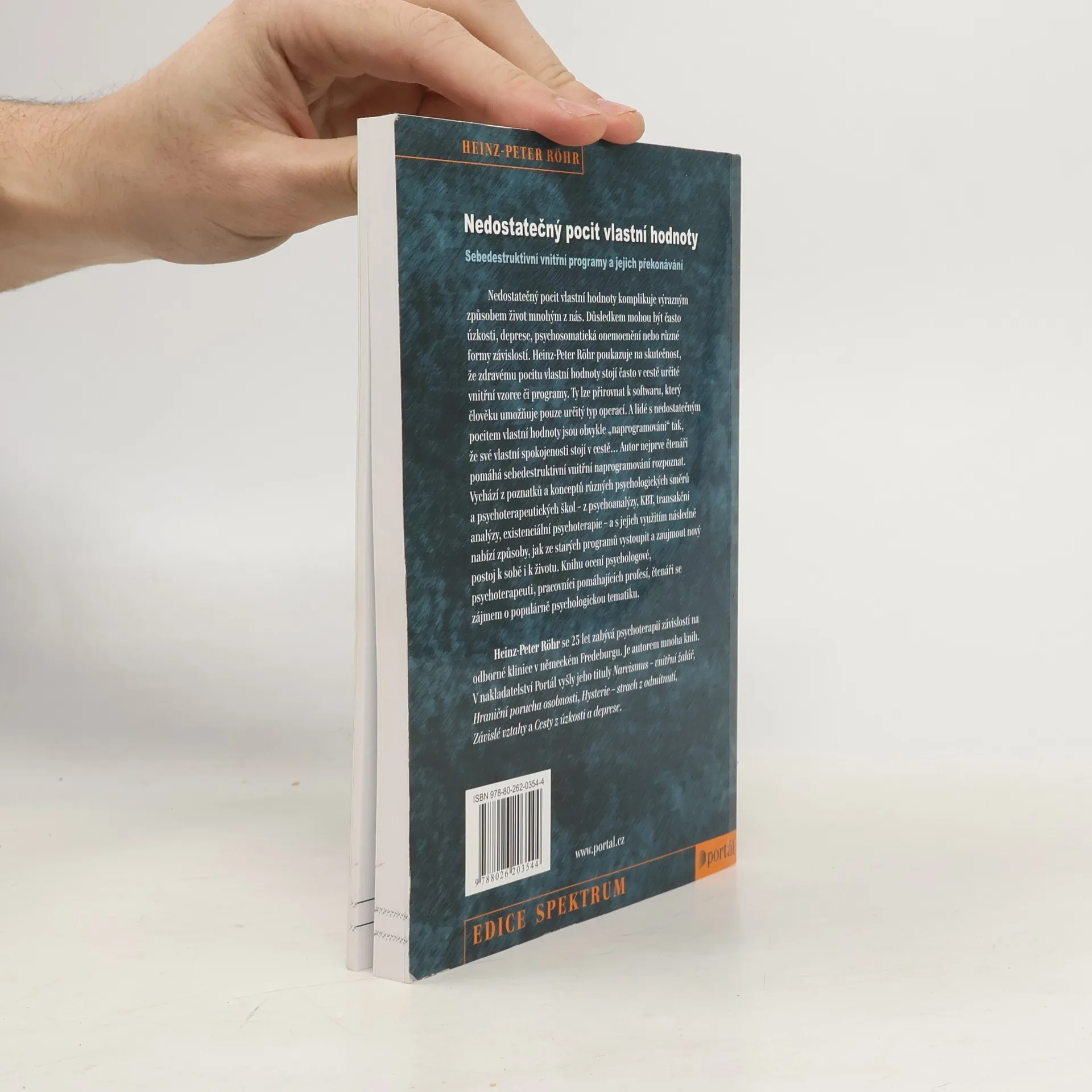 Sebedestruktivní vnitřní programy a jejich překonávání. Nedostatečný pocit vlastní hodnoty komplikuje výrazným způsobem život mnohým z nás. Důsledkem mohou být často úzkosti, deprese, psychosomatická onemocnění nebo různé formy závislostí. Heinz-Peter Röhr poukazuje na skutečnost, že zdravému pocitu vlastní hodnoty stojí často v cestě určité vnitřní vzorce či programy. Ty lze přirovnat k softwaru, který člověku umožňuje pouze určitý typ operací. A lidé s nedostatečným pocitem vlastní hodnoty jsou obvykle „naprogramováni“ tak, že své vlastní spokojenosti stojí v cestě… Autor čtenáři pomáhá nejprve sebedestruktivní vnitřní naprogramování rozpoznat. Vychází z poznatků a konceptů různých psychologických směrů a psychoterapeutických škol – z psychoanalýzy, KBT, transakční analýzy, existenciální psychoterapie – a s jejich využitím následně pomáhá, jak ze starých programů vystoupit a zaujmout nový postoj k sobě i k životu. Knihu ocení psychologové, psychoterapeuti, pracovníci pomáhajících profesí, čtenáři se zájmem o populárně psychologickou tematiku.