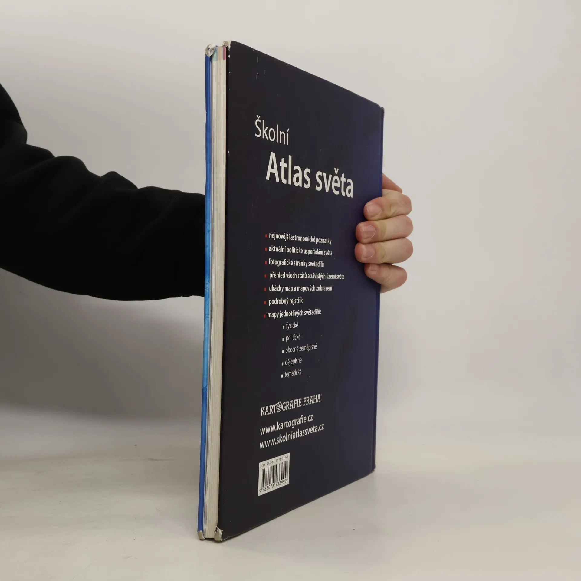 Nejprodávanější český školní atlas je univerzální pomůckou pro výuku zeměpisu na všech stupních škol. Atlas je rozdělen do tematických kapitol s barevným odlišením, což usnadňuje orientaci v mapách. Úvodní část obsahuje nejnovější astronomické poznatky o vesmíru a Sluneční soustavě. Následuje kapitola Svět s tematickými mapami zaměřenými na přírodu, obyvatelstvo, hospodářství a prostředí, v němž lidé žijí. Části věnované jednotlivým světadílům zahrnují podrobné obecně zeměpisné mapy s doplňujícími tematickými mapami a historickými mapami klíčových etap vývoje kontinentů, což umožňuje mezipředmětovou výuku. Mapovou část každého světadílu uvádějí fotografické stránky s charakterizujícím textem a tabulkou geografických údajů. Atlas obsahuje přehlednou tabulku všech států a závislých území světa, tabulky zeměpisných rekordů a rejstřík s více než 15 000 názvy. Čtvrté vydání navazuje na úspěšná vydání z let 2004, 2007 a 2011. Mezi novinky patří témata jako zaměstnanost žen, vzdělání, zdravotnictví a kvalita života, nové téma Ohniska napětí ve světě, fyzická a administrativní mapa Česka, podrobná mapa severní Asie a vylepšený znakový klíč obecně zeměpisných map pro lepší čitelnost.