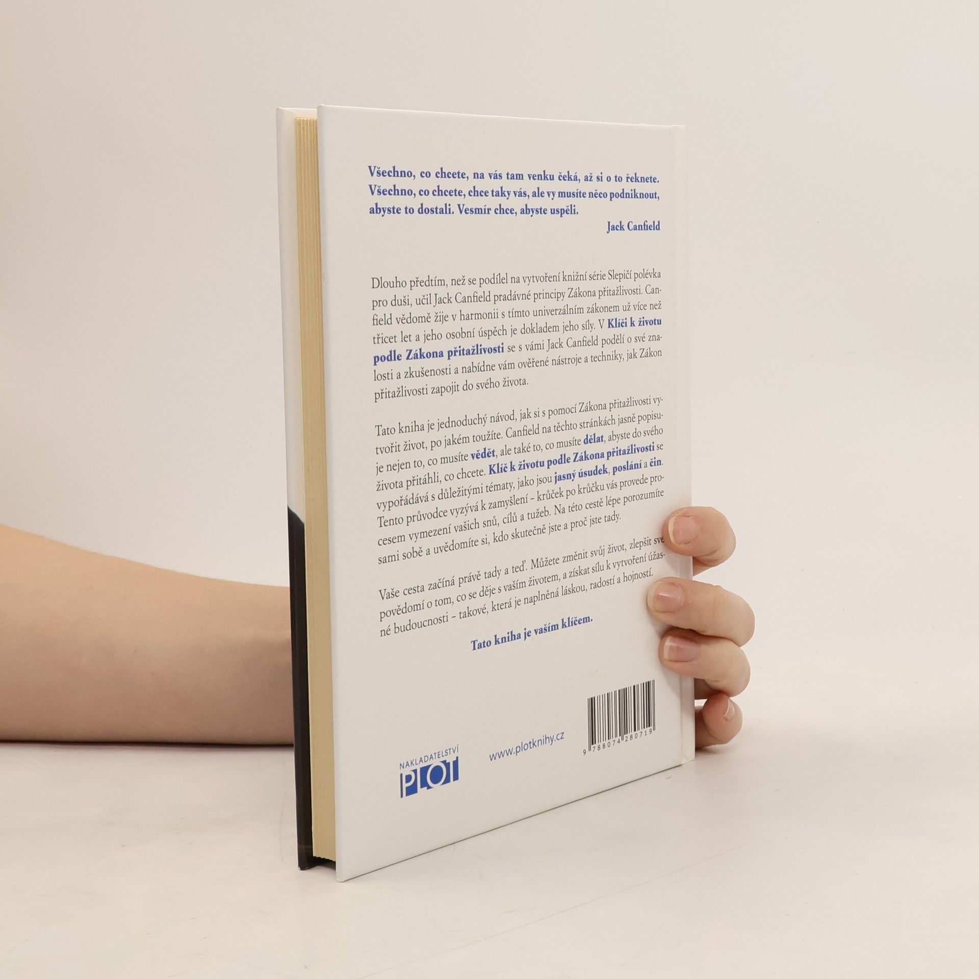 Tato kniha je jednoduchý návod, jak si s pomocí Zákona přitažlivosti vytvořit život, po jakém toužíte. Canfield na těchto stránkách jasně popisuje nejen to, co musíte vědět, ale také to, co musíte dělat, abyste do svého života přitáhli, co chcete. Klíč k životu podle Zákona přitažlivosti se vypořádává s důležitými tématy, jako jsou jasný úsudek, poslání a čin. Tento průvodce vyzývá k zamyšlení – krůček po krůčku vás provede procesem vymezení vašich snů, cílů a tužeb. Na této cestě lépe porozumíte sami sobě a uvědomíte si, kdo skutečně jste a proč jste tady. Vaše cesta začíná právě tady a teď. Můžete změnit svůj život, zlepšit své povědomí o tom, co se děje s vaším životem, a získat sílu k vytvoření úžasné budoucnosti – takové, která je naplněná láskou, radostí a hojností. Tato kniha je vaším klíčem.
