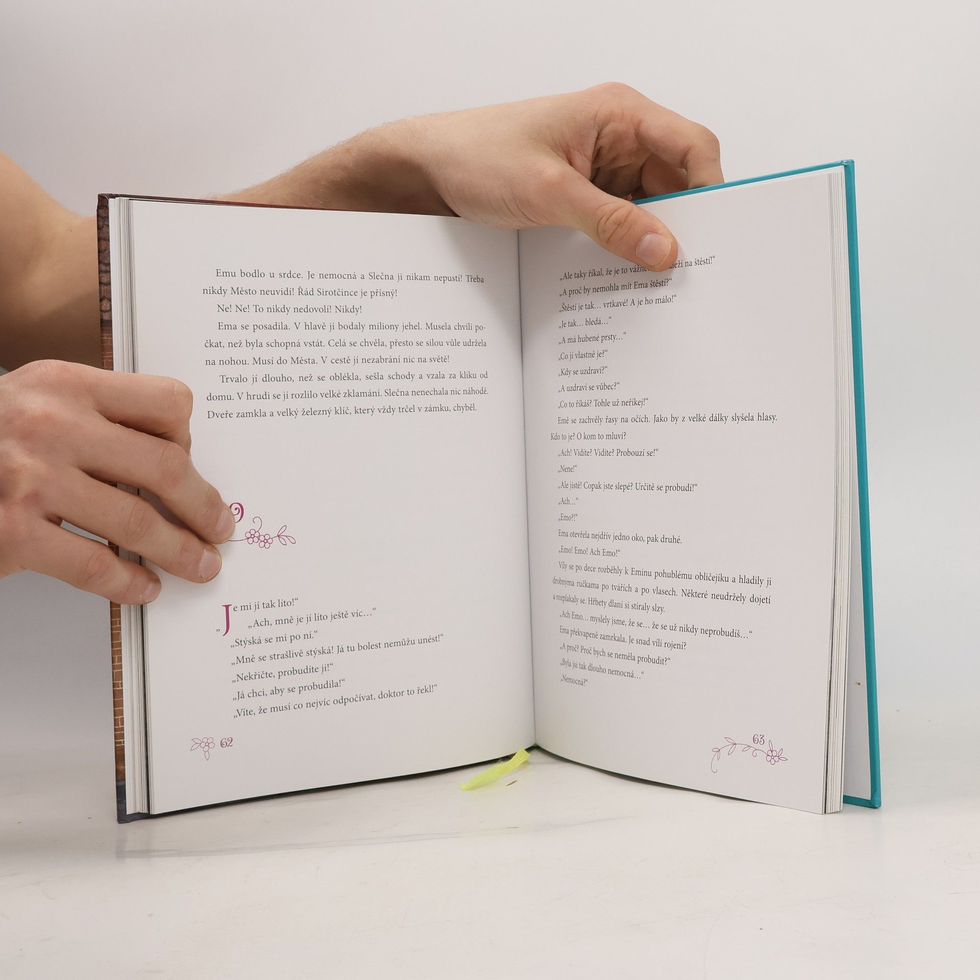 Ema si nepamatuje, že by někdy žila jinde než s ostatními dětmi bez rodičů v Sirotčinci. Moc mezi ně nezapadá. Dokáže totiž slyšet a vidět věci, které jiné děti nevidí a neslyší – třeba malé víly… Moc se těší, až bude mít desáté narozeniny. Čeká ji totiž výlet do úchvatného Města, které je schované za vysokou zdí. Nakonec se její čekání ještě o rok prodlouží, ale stojí to za to. Ema si z Města odnáší spoustu dobrodružných zážitků a zkušeností. Hlavně však kouzelnou knihu, která změní život nejen jí, ale i všem ostatním v Sirotčinci.