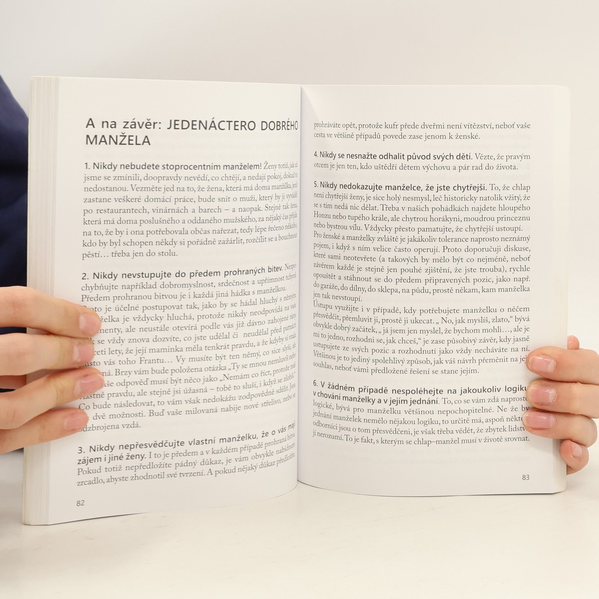 Některá doporučení i konkrétní rady v této knize, jak například vyjít s mužem, se ženou, s rodiči, s tchyní, se sourozenci a rodinou vůbec, či rady, jak vyjít s úředníkem, nadřízeným, blbcem, soudem, lékařem, ale i jak vyjít s penězi a se životem vůbec, vám můžou pomoci v různých svízelných situacích i pochopit jednání lidí, s kterými nějak vyjít musíte. Při četbě této knihy si promítnete, že s takovým mužem či ženou jste se už někdy setkali, a třeba i vám připomene, že jste se třeba i vy chovali nepatřičně. Mottem této knížky by mohlo být ono staré známé „Neberte život vážně, stejně na něj umřete,“ protože rady a doporučení jsou zde podány s nadhledem, ironií a s jistou dávkou humoru. Máme dobrý pocit, že autorovi se to vrchovatou měrou povedlo a že to nebude jeho poslední kniha na toto téma