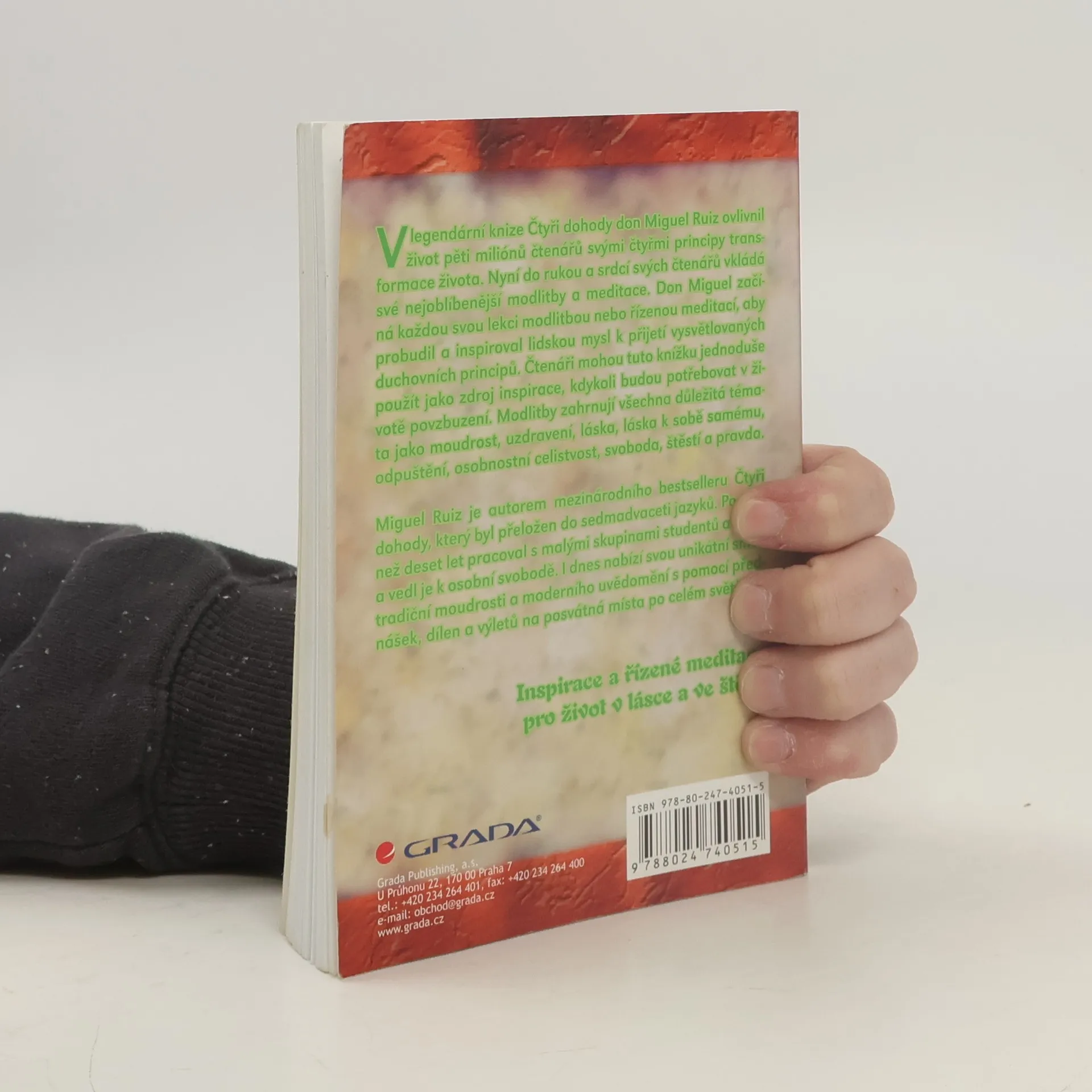 V legendární knize Čtyři dohody don Miguel Ruiz ovlivnil život pěti milionů čtenářů svými čtyřmi principy transformace života. Nyní do rukou s srdcí svých čtenářů vkládá své nejoblíběnejší modlitby a meditace. Don Miguel začíná každou svou lekci modlitbou nebo řízenou meditací, aby probudil a inspiroval lidskou mysl k přijetí vysvětlovaných duchovních principů. Čtenáři mohou tuto knížku jednuduše použít jako zdroj inspirace, kdykoli budou potřebovat v životě povzbuzení. Modlitby zahrnují všechna důležitá témata jako moudrost, uzdravení, odvaha, láska, láska k sobě samému, odpuštění, osobnostní celistvost, svoboda, štěstí a pravda.