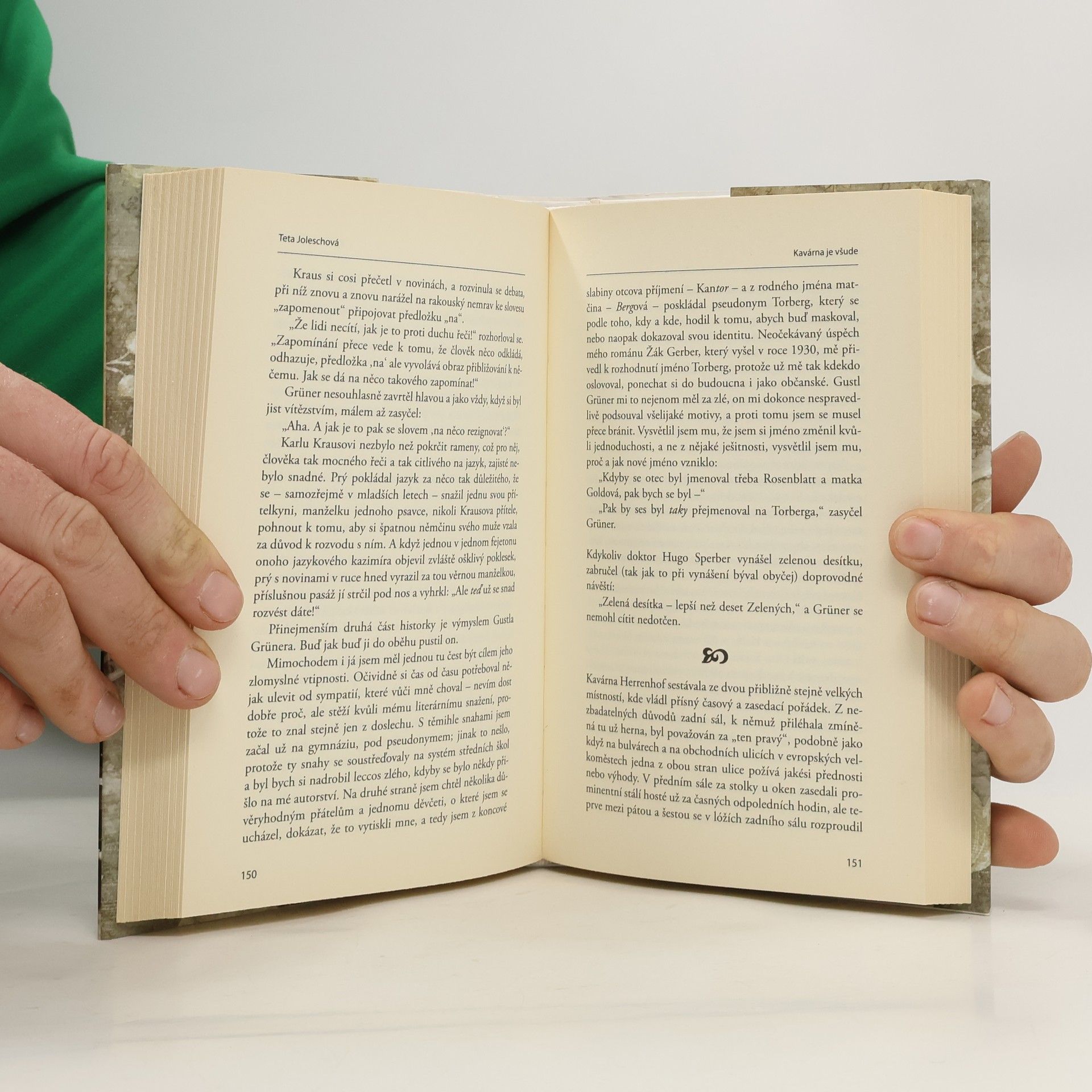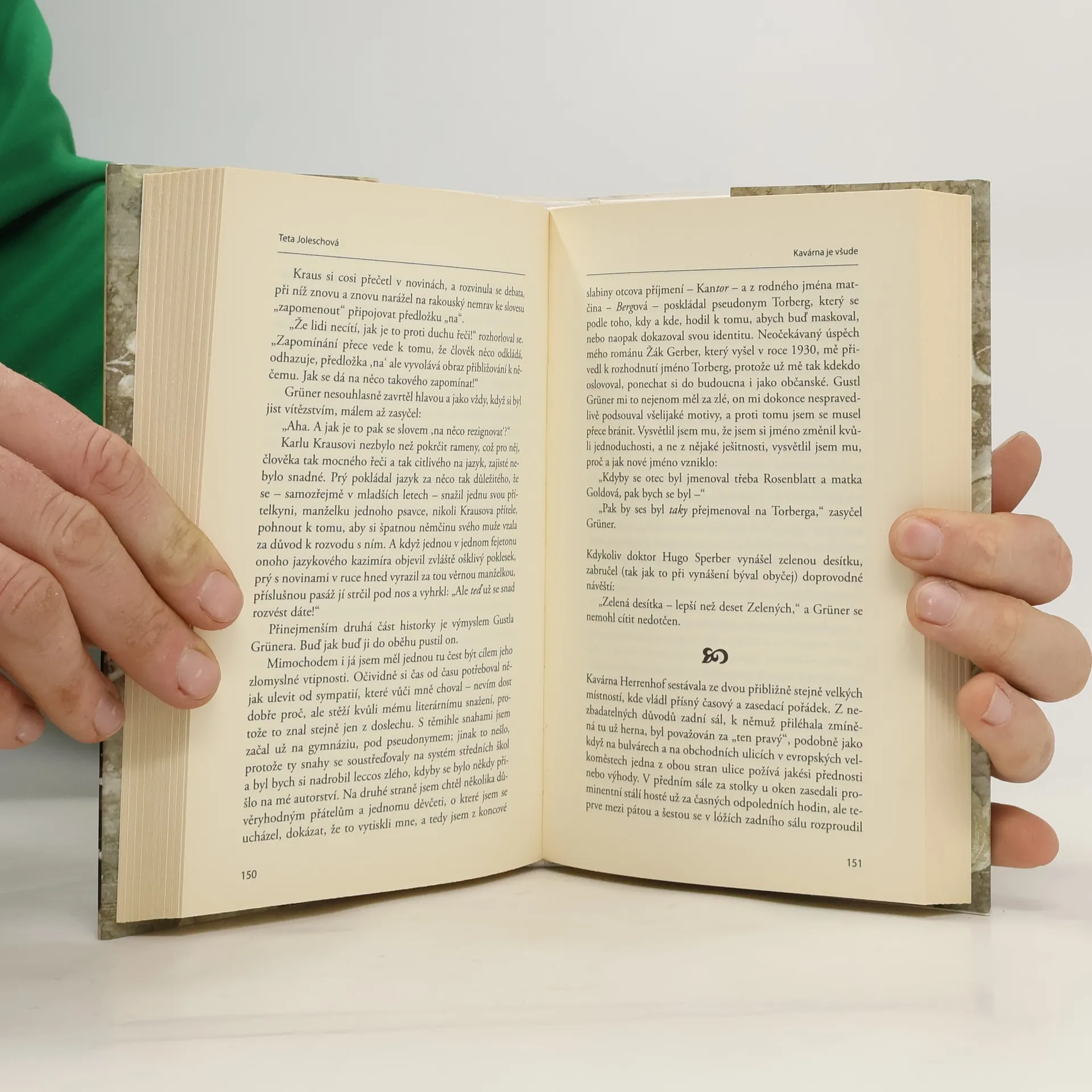 V Tetě Joleschové nás Friedrich Torberg uvádí do kavárenského života Prahy a Vídně 20. a 30. let, kde ještě přežívá útulná a snášenlivá kultura mnohonárodního starého Rakouska, kde se střední vrstva stále považuje za spoluobčany a tráví neuvěřitelné tisíce hodin (často až do rána) v družných diskusích o lidech, kultuře a stavu světa. Tady pěstovala dnes už zaniklé konverzační umění repartee – okamžité, hbité a především vtipné odpovědi. Jak dokládají Torbergovy anekdoty, nepochybně v něm excelovala proslavená i zneslavená židovská výmluvnost, sebeironie a sebeobranný humor, v nemalé míře i proto, že židé ztratili ochranu starého mocnářství. Bonmot či epigram mohou vzniknout právě jen v takové pestré pospolitosti. Skutečně: v podivuhodné symbióze se v tehdejších kavárnách prolíná svět obchodníků a prokuristů s literáty a umělci všeho druhu a pozdní květ rakouské kultury po první válce má své kolektivní kořeny, tak často židovské a české, právě zde: Stefan Zweig, Rainer Maria Rilke, Karl Kraus, Peter Altenberg, Leo Perutz, Franz Werfel, Robert Musil – máme-li jmenovat alespoň ty nejvýznačnější. Svět rakouských kaváren zanikl, ta tam je legendární Tante Jolesch, ale vtip trvá.