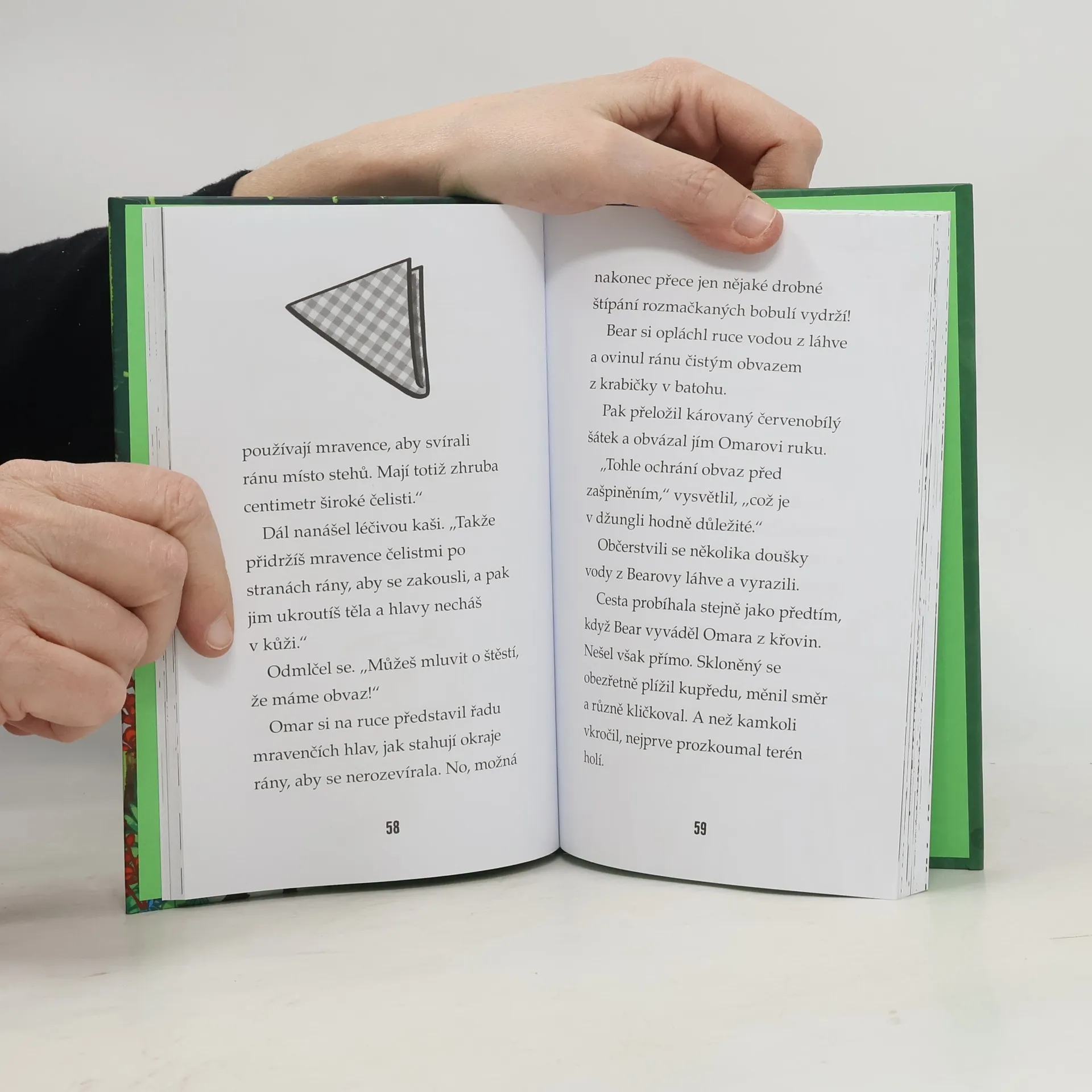 Omar chce za každou cenu vyhrát. Za každých okolností musí být nejrychlejší a nejlepší, i kdyby kvůli tomu měl být nepříjemný na ty, kterým to zrovna tolik nejde. Jednoho dne ho kouzelný kompas přenese do hustého tropického pralesa – tváří v tvář smrtícím pavoukům, jedovatým hadům a také jeho novému průvodci, Bearu Gryllsovi. Společně si musí proklestit cestu nebezpečným podrostem a překonat řeku plnu krokodýlů… Dokáže se Omar zklidnit, zachovat chladnou hlavu a přizpůsobit se zákonu džungle? Kniha je určena dětem od 7 let.