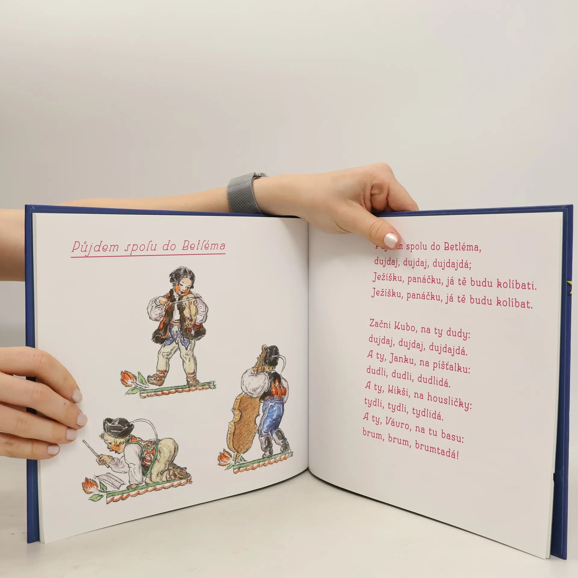 Jedna z nejkrásnějších knih malířky a ilustrátorky, jejíž celoživotní tvorba byla spjata především se světem dětí. Rozkládací leporelo s vánoční tematikou vyšlo poprvé již před více než půlstoletím, ale i dnes ocení nejmenší čtenáři hřejivost autorčiných ilustrací i její typicky český výtvarný rukopis, doprovázený koledami a roztomilými verši. Marie Fischerová-Kvěchová (1894–1984) studovala u Jana Preislera a Jakuba Schikanedera na Umělecko-průmyslové škole v Praze, poté žila v Paříži, její francouzský pobyt však předčasně ukončila první světová válka. Po návratu do Prahy se provdala za lékaře Jana Fischera. V roce 1916 vydává knížku ilustrací lidových písniček a říkánek Našim dětem, po ní následuje řada dalších: Sládkovy Skřivánčí písně, slabikář Poupata, Karafiátovi Broučci, Němcové Babička aj.
