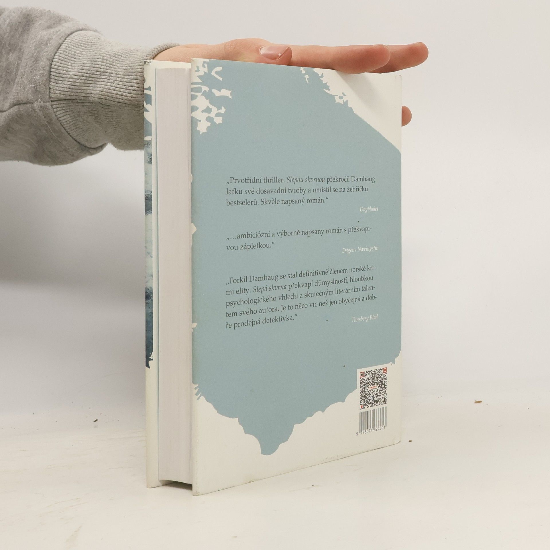 Psychologický thriller o krutosti a temnotách lidské duše. Září 1996. Jo, dospívající dvanáctiletý chlapec, tráví se svou rodinou prázdniny na Krétě. Slunce, moře, krásné dívky. Mohlo by to vypadat jako splněný sen. Ale Jo to takto nevnímá. Je znechucený matkou a jejím přítelem, kteří tráví veškerý čas popíjením, zatímco Jo se musí starat o své malé sourozence. Jediný, s kým si Jo rozumí a kdo mu dokonce pomáhá ve snaze získat vysněnou dívku, je muž, který si nechává říkat Sako. Jednoho dne Jo překvapí svůj objekt lásky v objetí s někým jiným a vzteky umučí kočku, jejíž mrtvé tělo zavěsí dívce na dveře. Prosinec 2008, Oslo. Mladá psychoterapeutka Mailin náhle zmizí. Její mladší sestra Liss se vrací z Amsterodamu, kde se protloukala jako modelka, a snaží se vypátrat, co se s její sestrou stalo. Naděje zmizí ve chvíli, kdy je nalezeno zohavené tělo její sestry. Jaké je spojení mezi prázdninami na Krétě, chlapcem Joem, tajuplným mužem jménem Sako a rokem 2008, Liss a Mailin? Proč musela Mailin zemřít? Jaká je pravá tvář psychopata, který neváhá svoje oběti nejdříve oslepit? Slepá skvrna je román plný krutosti a zároveň precizní psychologickou studií temnoty lidské duše. Damhaug nejenže čtenáře nenechá vydechnout, ale umí i přesvědčit, že jeho spletitý příběh by mohl být pravdivý a že by se mohl odehrát kdekoli na světě.