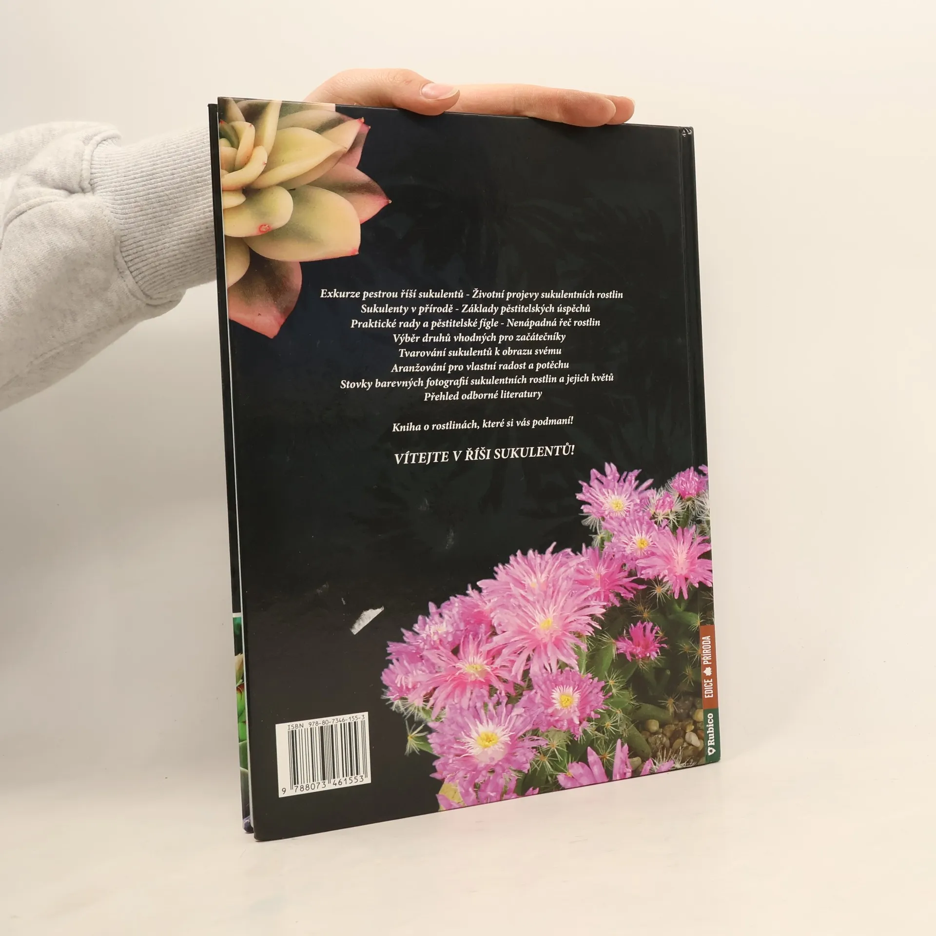 Kniha českých autorů plná rad a perfektních fotografií podrobně seznamuje čtenáře se vším okolo sukulentů. Co jsou, jakou potřebují péči, jaké existují druhy, jak se množí, ošetřují, aranžují... Podívejte se na ukázku. Ačkoliv sukulenty pocházejí z dalekých krajin, za okny našich ústředně vytápěných obydlí se díky své přírodní výbavě cítí jako doma. Jsou mimořádně pestré, jak tvarem, velikostí, tak květy, a nenáročné na pěstování. Sukulenty tvoří zdánlivě nesourodé společenství rostlin zvláštních tvarů, pestrých barev i nádherných květů. Tato kniha má zájemcům o jejich pěstování pomoci porozumět nenápadné řeči, kterou k nim sukulenty promlouvají a která jim usnadní rozpoznat jejich skutečné potřeby. A v neposlední řadě nabízí do začátků i trochu inspirace, kterou pak může každý rozvíjet dle své vlastní fantazie.