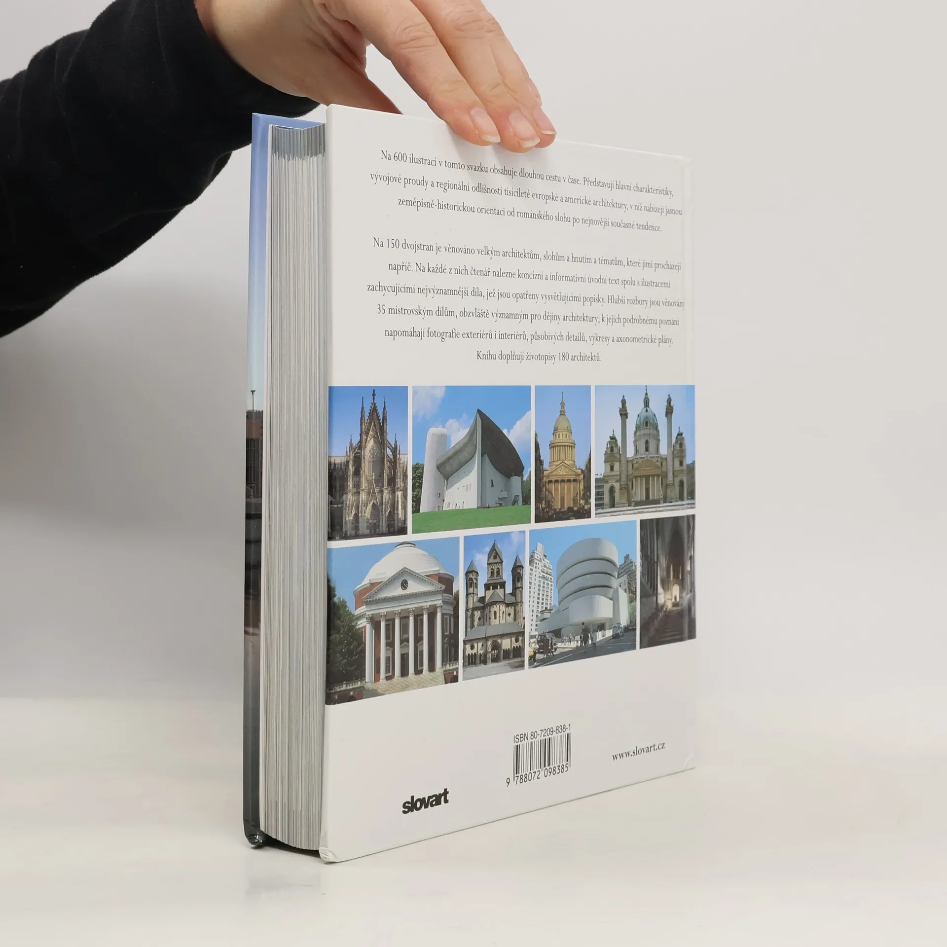 Nový typ přehledného zpracování vývoje a představitelů světové architektury. Velice rozsáhlá publikace představuje hlavní charakteristiky, vývojové proudy a regionální odlišnosti tisícileté evropské a americké architektury, v níž nabízejí jasnou zeměpisně-historickou orientaci od románského slohu po nejnovější současné tendence. Na 150 dvojstran je věnováno velkým architektům, slohům a hnutím a tématům, které jimi procházejí napříč. Hlubší rozbory jsou věnovány 35 mistrovským dílům, obzvláště významným pro dějiny architektury. K jejich podrobnému poznání napomáhají fotografie exteriérů i interiérů, působivých detailů, výkresy a axonometrické plány. Knihu doplňují životopisy 180 architektů. Rozsáhlá publikace se skládá ze dvou hlavních částí: Atlasu a příloh. Atlas zahrnuje 148 témat, z nichž o každém se pojednává na dvoustraně, a k nim se připojují další detailní a hlubší informace o 36 mistrovských dílech architektury všech dob. Každá strana je charakterizovaná záhlavím, ve kterém je uveden název, místo a doba a barevný pruh, odlišující jednotlivé architektonické styly: románský sloh, gotika, renesance, baroko a rokoko a historicismus. Přílohy jsou pojaty jako informativní pomůcka k Atlasu.