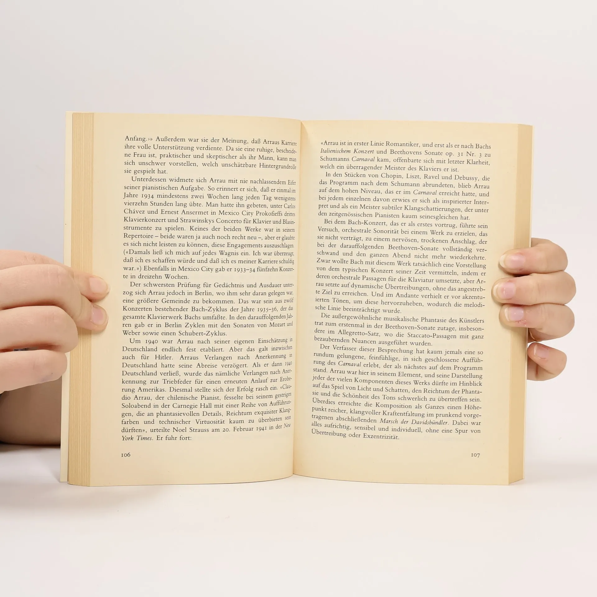 Dieses Werk hat weitgehend den Charakter eines Selbstzeugnisses. Es ist aber nicht nur Rückblick auf ein langes, von vielen Wechselfällen geprägtes Leben und eine einzigartige Konzertkarriere. Claudio Arrau vermittelt zugleich Wesentliches über Fragen der Spieltechnik und werkgetreuer Interpretation, die das Musikverständnis eines jeden Lesers bereichern. Nicht zuletzt werfen seine Erinnerungen auch immer wieder interessante Streiflichter auf andere große Zeitgenossen, von d’Albert, Busoni und Saint-Saëns bis zu Artur Schnabel, Wilhelm Kempff, Edwin Fischer, Furtwängler, Gieseking u. a., und tragen bei zu einem Stück Musikgeschichte aus erster Hand.