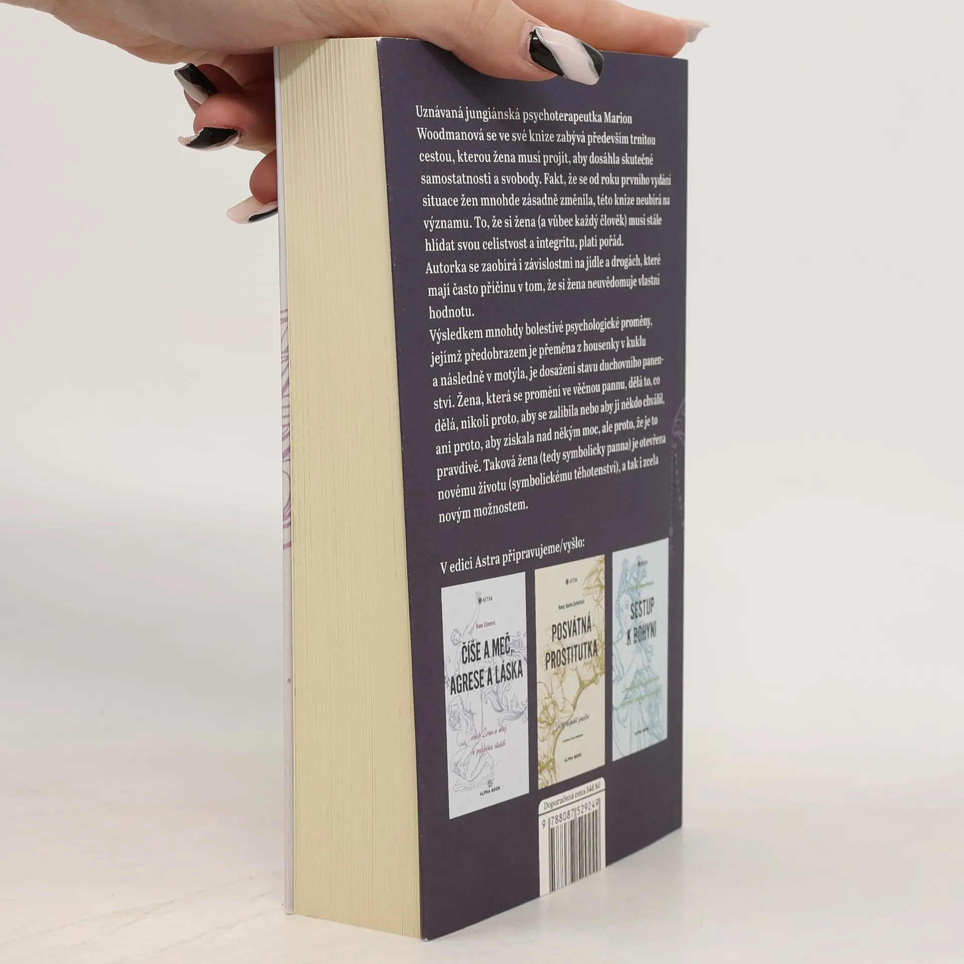 Uznávaná jungiánská psychoterapeutka Marion Woodmanová se ve své knize zabývá především trnitou cestou, kterou žena musí projít, aby dosáhla skutečné samostatnosti a svobody. Fakt, že se od roku prvního vydání situace žen zásadně změnila, této knize neubírá na významu. To, že si žena (a vůbec každý člověk) musí stále hlídat svou celistvost a integritu, platí pořád. Autorka se zabývá i závislostmi na jídle a drogách, které mají často příčinu v tom, že si žena neuvědomuje vlastní hodnotu. Výsledkem mnohdy bolestivé psychologické proměny, jejímž předobrazem je přeměna z housenky v kuklu a následně v motýla, je dosažení stavu duchovního panenství. Žena, která se promění ve věčnou pannu, dělá to, co dělá, nikoli proto, aby se zalíbila nebo aby ji někdo chválil, ani proto, aby získala nad někým moc, ale proto, že je to pravdivé. Taková žena (tedy symbolicky panna) je otevřena novému životu (symbolickému těhotenství), a tak i zcela novým možnostem.
