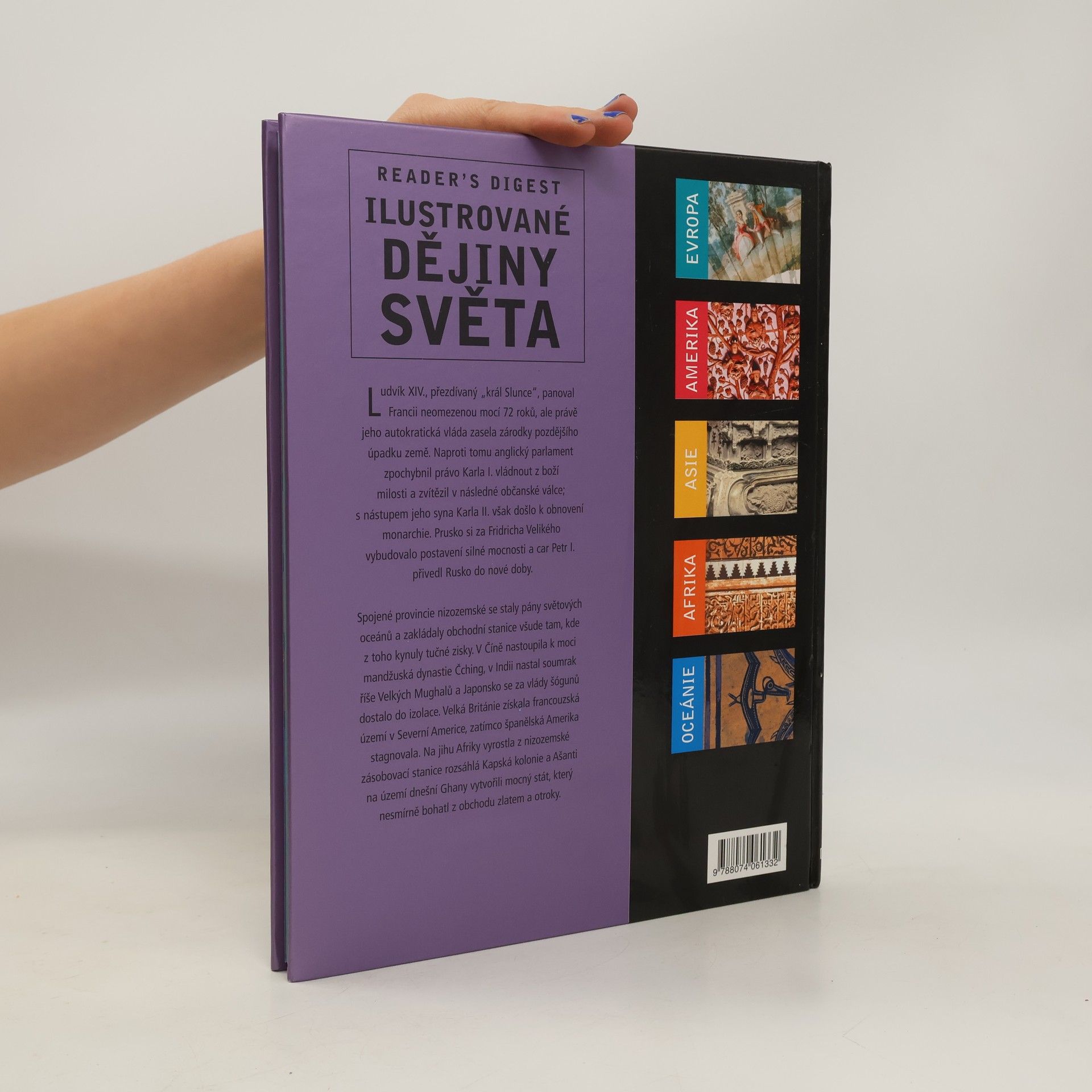Krásně zpracovaná kniha Zlatý věk Evropy vás zavede do Francie za vlády „krále Slunce“ Ludvíka XIV., jehož neomezená vláda trvající 72 let zasela zárodky pozdějšího úpadku země. Navštívíte nové pány světových oceánů, Spojené provincie nizozemské, nebo âínu, kde k moci právě nastoupila mandžuská dynastie âching. V Indii prožijete soumrak říše Velkých Mughalů a dozvíte se, jak Japonsko ovlinila vláda šógunů. Vypravíte se i na území Afriky a poznáte nesmírné bohatství Ašantů, kteří na území dnešní Ghany vytvořili mocný stát. Nástin vývoje světových dějin v průběhu let 1648-1773.