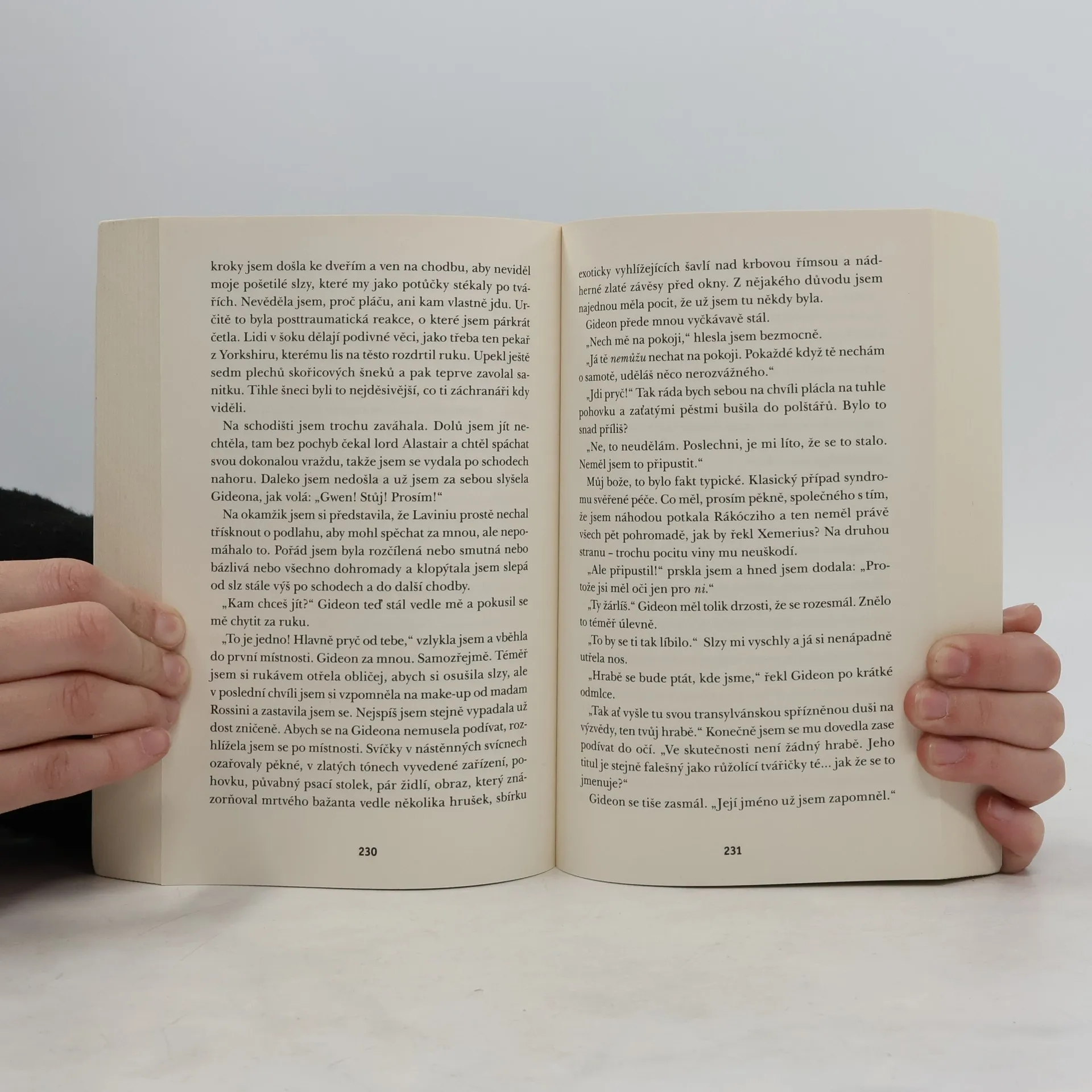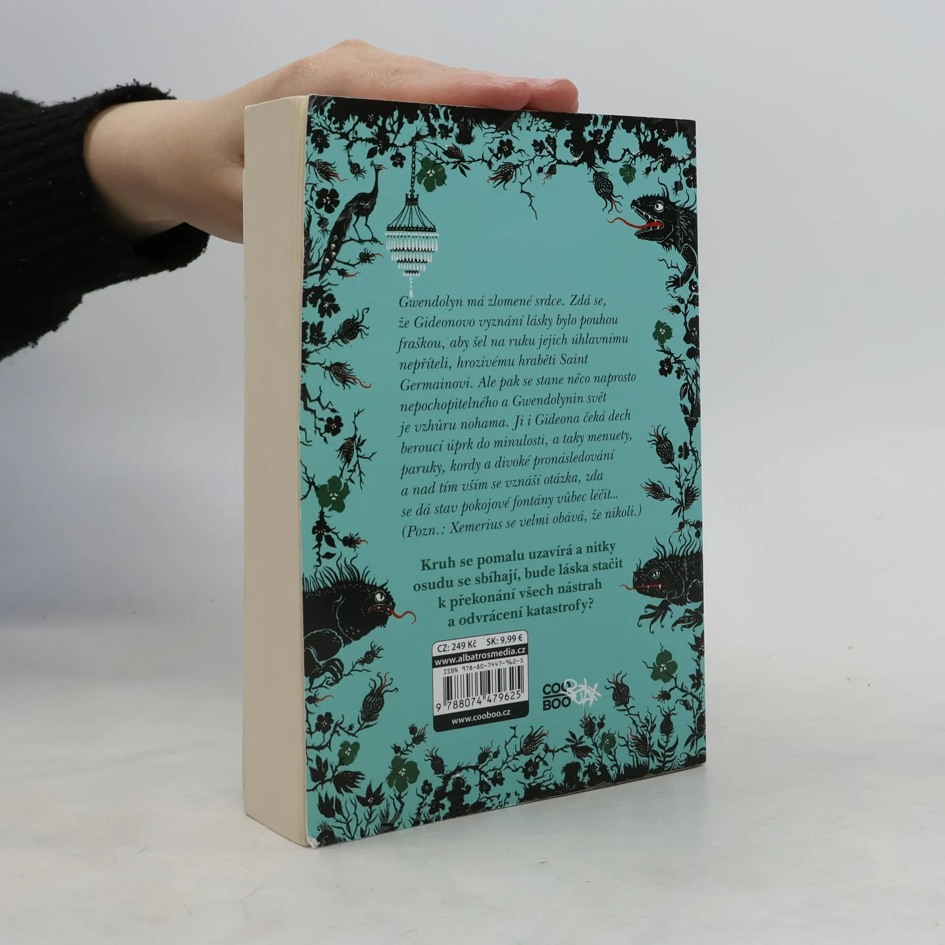 Gwendolyn má zlomené srdce. Zdá se, že Gideonovo vyznání lásky bylo pouhou fraškou, aby šel na ruku jejich úhlavnímu nepříteli, hrozivému hraběti Saint Germainovi. Ale pak se stane něco naprosto nepochopitelného a Gwennin svět je vzhůru nohama. Ji i Gideona čeká dech beroucí úprk do minulosti, a taky menuety, paruky, kordy a divoké pronásledování a nad tím vším se vznáší otázka, zda se dá stav pokojové fontány vůbec léčit…