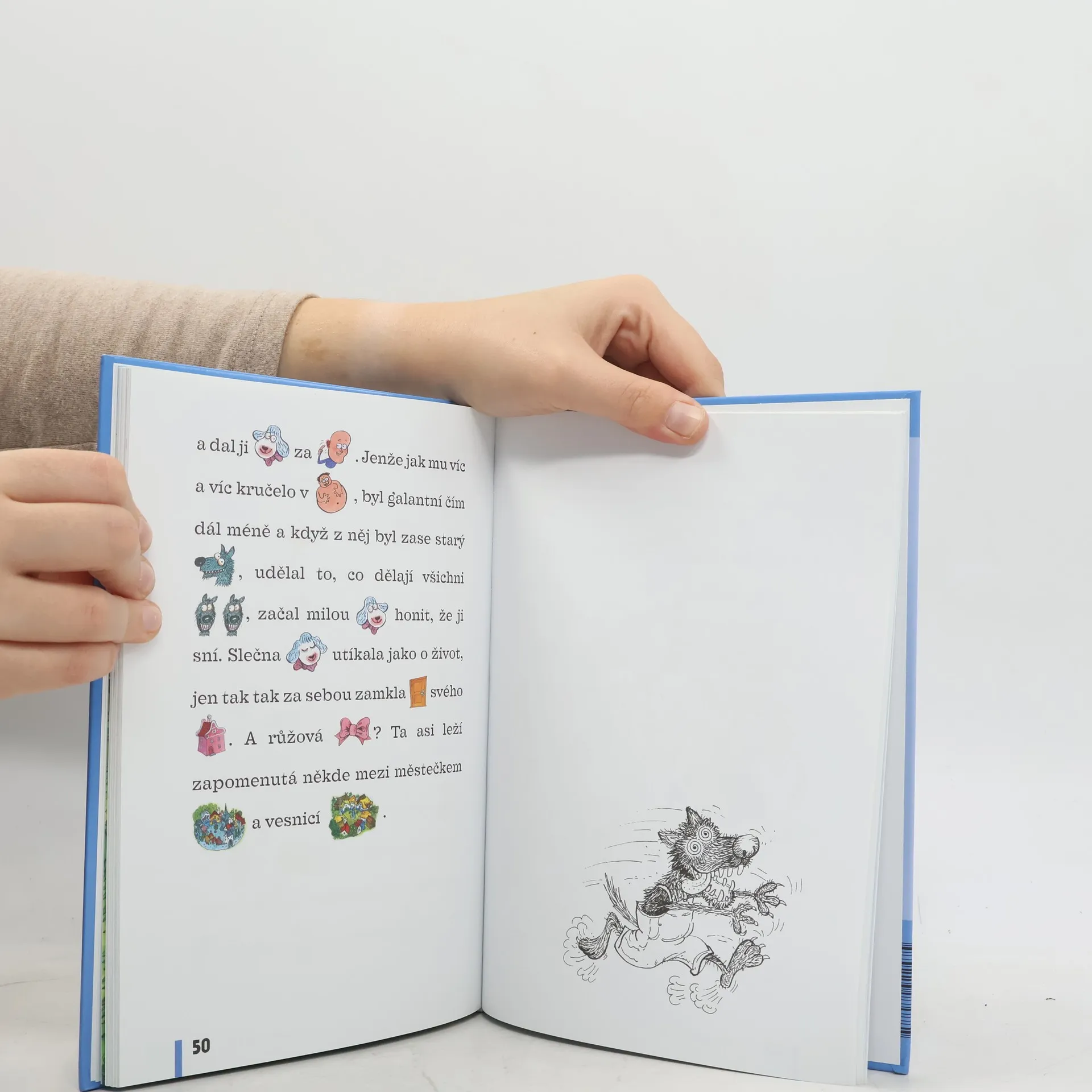 Veselé příběhy, na motivy klasický pohádek, ve kterých jsou desítky slov nahrazeny obrázky. Tzv. „dvojhlasné čtení“, kdy dospělý předčítá a dítě doplňuje malovaná slova, hravou formou rozvíjí slovní zásobu dítěte i schopnost reprodukovat vyprávěný text. V závěru každé kapitoly jsou jednoduché úkoly, které prověří do jaké míry si dítě text zapamatovalo. Na konci knihy je slovníček všech malovaných slov. Jednotlivé pohádky doplňují celostranové barevné ilustrace.