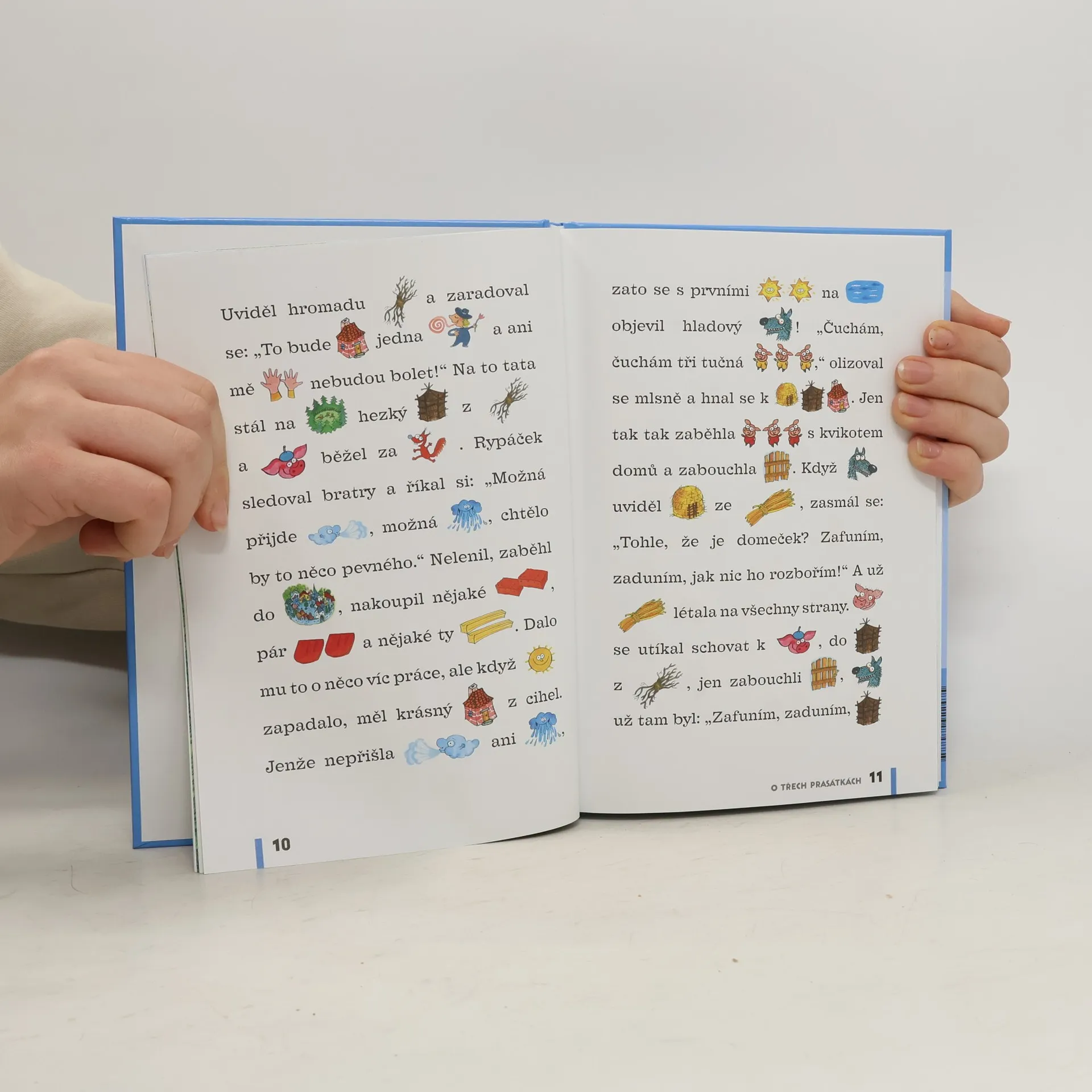 Veselé příběhy, na motivy klasický pohádek, ve kterých jsou desítky slov nahrazeny obrázky. Tzv. „dvojhlasné čtení“, kdy dospělý předčítá a dítě doplňuje malovaná slova, hravou formou rozvíjí slovní zásobu dítěte i schopnost reprodukovat vyprávěný text. V závěru každé kapitoly jsou jednoduché úkoly, které prověří do jaké míry si dítě text zapamatovalo. Na konci knihy je slovníček všech malovaných slov. Jednotlivé pohádky doplňují celostranové barevné ilustrace.
