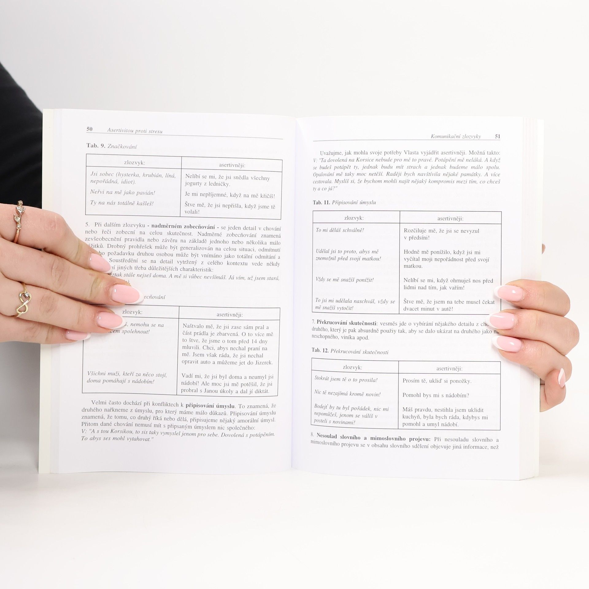 Příručka "Asertivitou proti stresu" je vhodná pro každého, kdo chce zlepšit svoje komunikační dovednosti. Zvláště může pomoci lidem, kteří trpívají nepohodou nebo napětím v mezilidských vztazích. V první části krok za krokem pomáhá pochopit, jakým způsobem člověk v sociálních situacích přemýšlí, jak se cítí a chová. Zabývá se komunikačními zlozvyky, kterých se lidé často dopouštějí. Ve druhé části nabízí asertivní alternativy komunikace v typických problémových situacích.