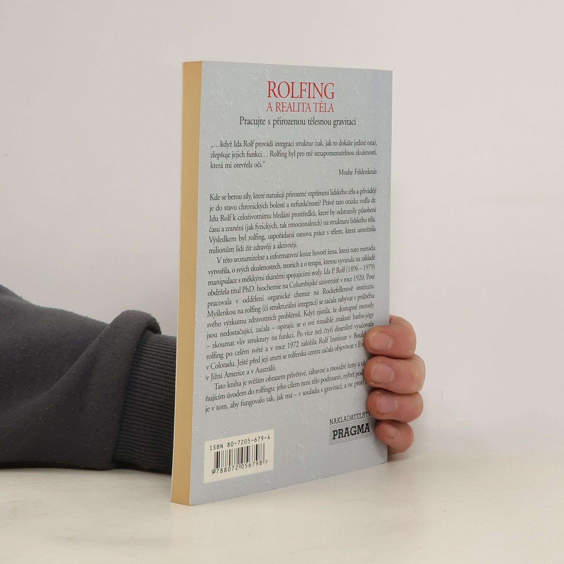 Kde se berou síly, které narušují přirozené vzpřímení lidského těla a přivádějí je do stavu chronických bolestí a nefunkčnosti? Právě tato otázka vedla dr.Idu Rolf k celoživotnímu hledání prostředků, které by odstranily působení času a zranění (jak fyzických, tak emocionálních) na strukturu lidského těla.Výsledkem byl rolfing, uspořádaná osnova práce s tělem, která umožnila miliónům lidí žít zdravěji a kvalitněji. V této prvotní srozumitelné a informativní knize hovoří žena, která tuto metodu vytvořila, o svých zkušenostech, teoriích a terapii, kterou vyvinula na základě manipulace s měkkými tkáněmi spojujícími svaly. Tato kniha je svěžím obrazem přívětivé, zábavné a moudré ženy a uklidňujícím úvodem do rolfingu: jeho cílem není tělo podmanit, nýbrž podpořit je v tom, aby fungovalo tak, jak má - v souladu s gravitací, a ne proti ní !