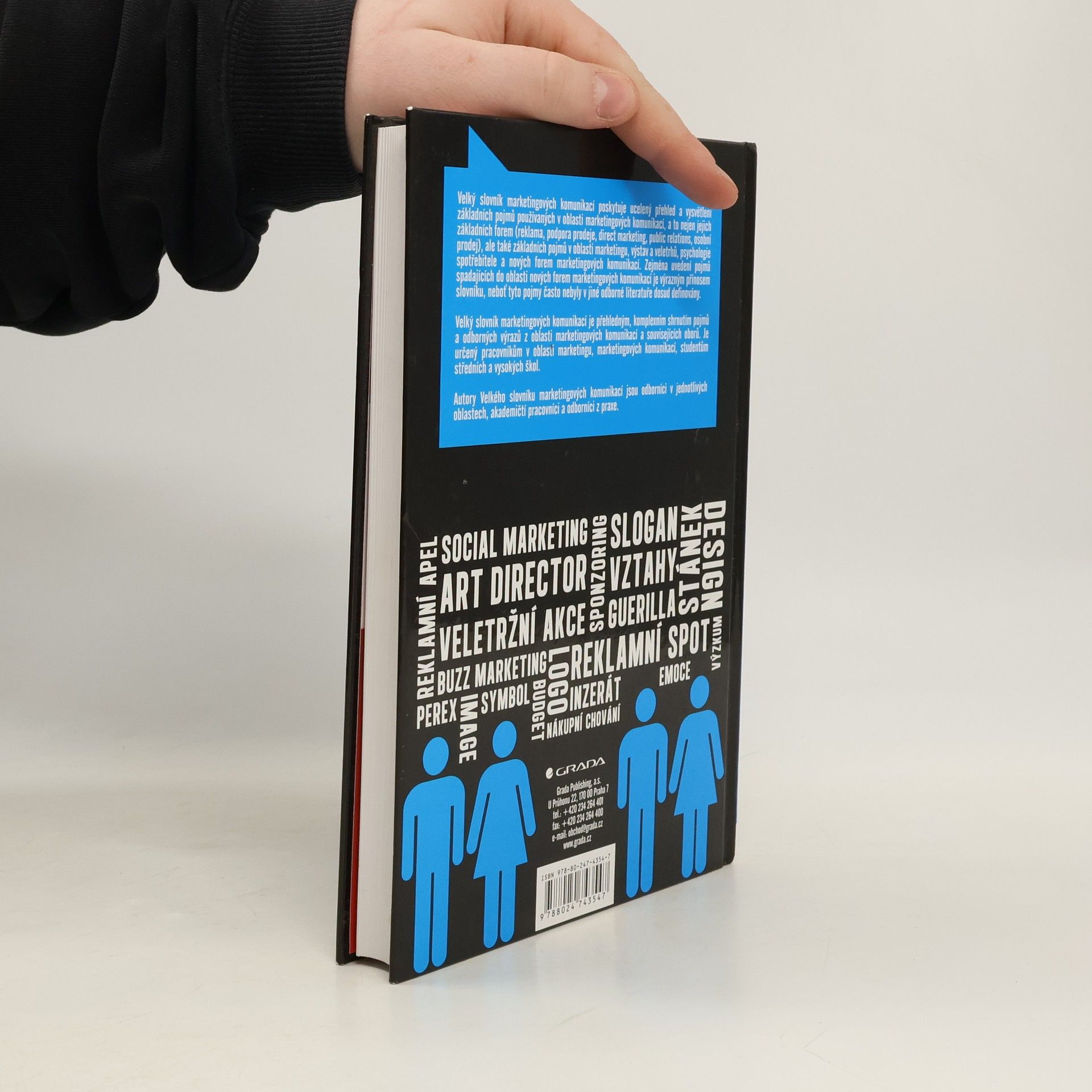 Velký slovník marketingových komunikací poskytuje ucelený přehled a vysvětlení základních pojmů používaných v oblasti marketingových komunikací, a to nejen jejich základních forem (reklama, podpora prodeje, direct marketing, public relations, osobní prodej), ale také základních pojmů v oblasti marketingu, výstav a veletrhů, psychologie spotřebitele a nových forem marketingových komunikací. Zejména uvedení pojmů spadajících do oblasti nových forem marketingových komunikací je výrazným přínosem slovníku, neboť tyto pojmy často nebyly v jiné odborné literatuře dosud definovány. Velký slovník marketingových komunikací je přehledným, komplexním shrnutím pojmů a odborných výrazů z oblasti marketingových komunikací a souvisejících oborů. Je určený pracovníkům v oblasti marketingu, marketingových komunikací, studentům středních a vysokých škol. Autory Velkého slovníku marketingových komunikací jsou odborníci v jednotlivých oblastech, akademičtí pracovníci a odborníci z praxe.