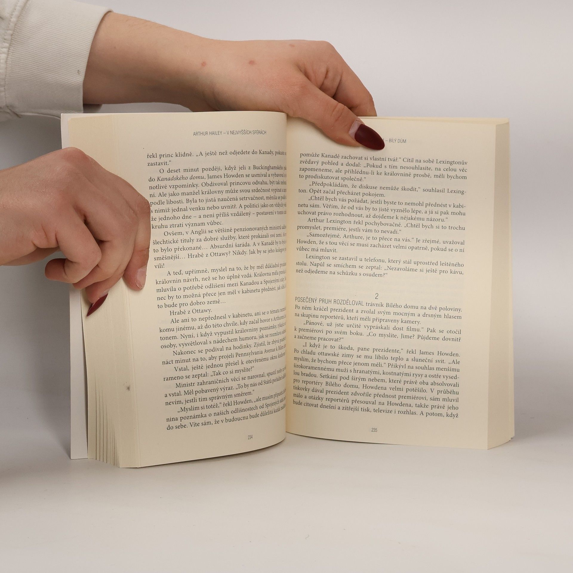 Arthur Hailey, jeden z nejpopulárnějších autorů 60.–90. let (tehdy vyšly ve velkých nákladech romány Letiště, Hotel, Penězoměnci, Účinný lék, Konečná diagnóza, Večerní zprávy, Kola), v příběhu V nejvyšších sférách zachycuje prostředí vysoce postavených politiků, vlád, parlamentů a diplomatů v období vrcholící studené války a zdůrazňuje, že všechno v knize je fikce. Přesto čtenář ani na chvíli nezapochybuje, že dramatické události a konflikty mají svůj základ v realitě. Ba dokonce, že některé politické špinavosti i činy velkého morálního kreditu sice v čase i prostoru vzdálené jsou dodnes v mnohém aktuální a připomínají děje nám blízké. Hailey je znám tím, že vždy píše pouze o prostředí, s nímž se dokonale sžil. Kdo by tedy nechtěl poznat protichůdné zájmy v politice a prostředky, jež byly kdysi za studené války populární a nejsou ve svých důsledcích v praxi zapomenuty ani dnes?