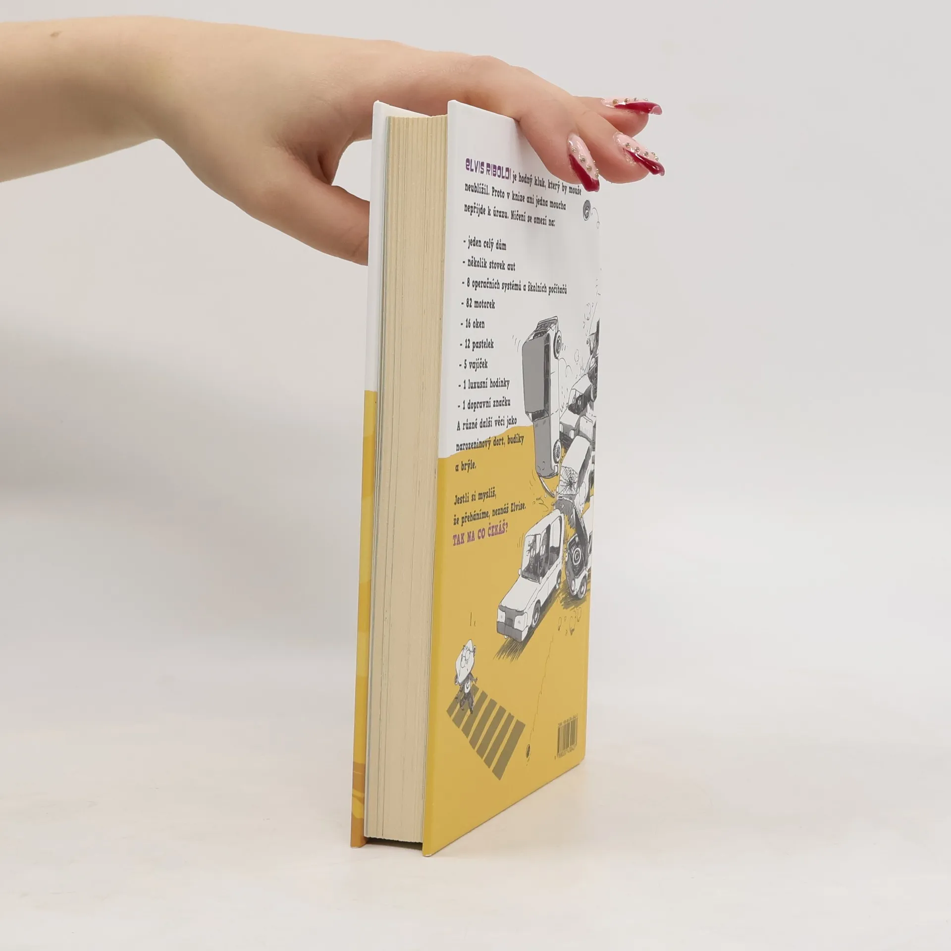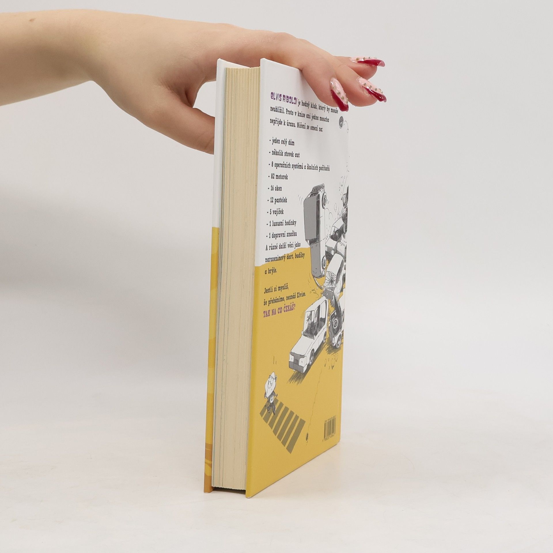 Elvis Riboldi je kluk, který by ani mouše neublížil. Proto také v této knize žádná moucha k úrazu nepřijde, bohužel ostatní takové štěstí nemají. Kam Elvis přijde, tam způsobí rozruch, nic před ním není v bezpečí. Je schopný zapálit dům, zničit najednou přes sto aut a motorek, rozbíjet okna, jíst tužky, vymazat školní operační systém, rozbíjet jak vajíčka, tak luxusní hodinky a spoustu dalších maličkostí, speciálně brýle svého přítele Borise nebo třeba svůj narozeninový dort. Zní jako malé převtělení ďábla, že? Ne všechno je, jak se zdá, a i Elvis má ke svému chování rozumné vysvětlení. Objevte ho ve vtipné knize pro děti i pro dospělé.