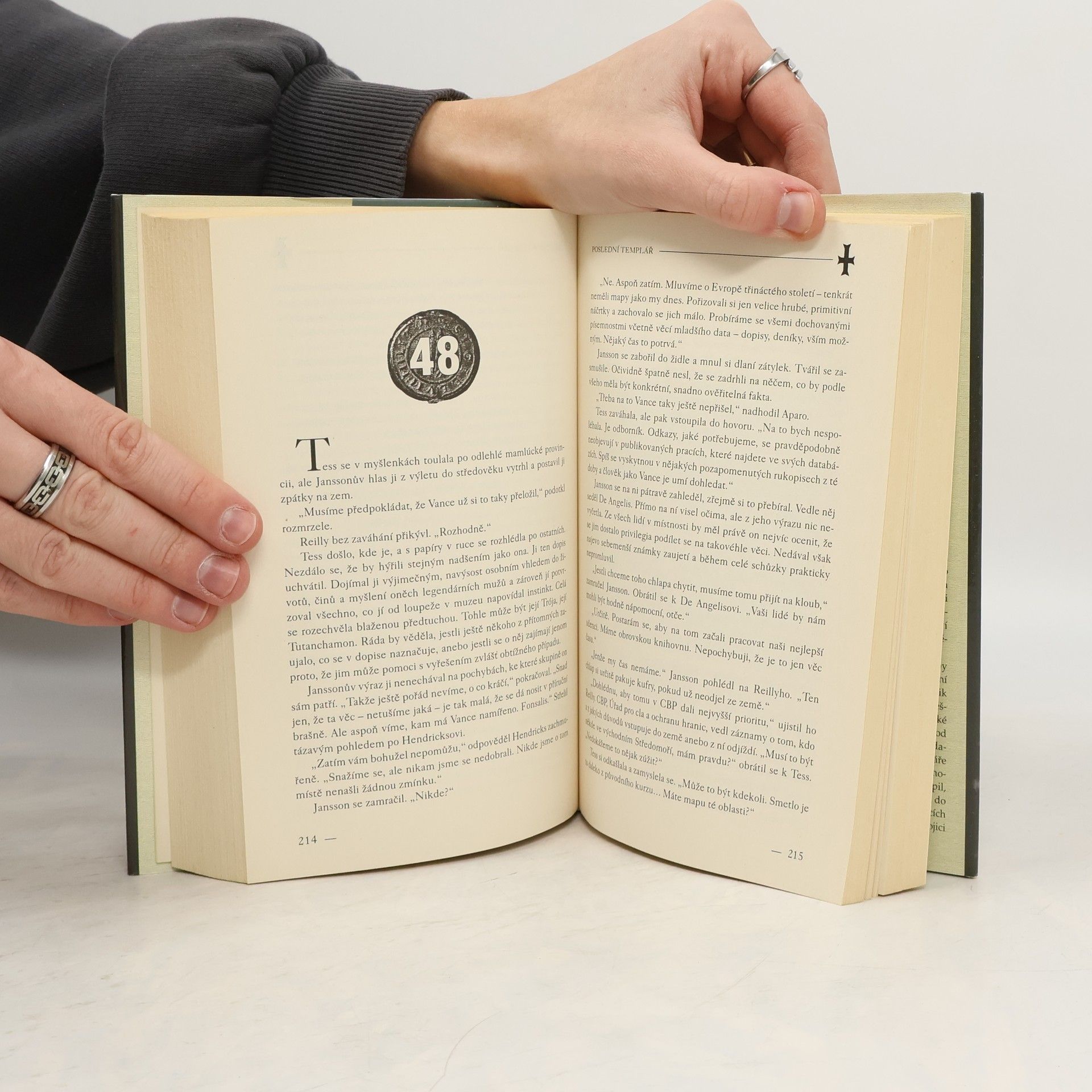 Detektivní thriller o hledání tajuplného templářského artefaktu, ukradeného při loupežném přepadení newyorského muzea. V Metropolitním muzeu v New Yorku se připravuje ojedinělá výstava - vystavovány mají být poklady ukryté po staletí za zdmi Vatikánu. Ale již při vernisáži vnikne i přes všechna bezpečnostní opatření do muzea čtveřice ozbrojených mužů, pozabíjí a zraní mnoho návštěvníků a několik cenných artefaktů ukradne. Do pátrání po zločincích se pustí nejen FBI, ale i archeoložka - očitá svědkyně krádeže, a církev, stojící za každou cenu o navrácení jednoho z odcizených předmětů. Ten by totiž mohl odhalit dlouho ukrývané tajemství zpochybňující samotné základy křesťanství. Vcelku čtivě napsaná kniha s detektivní zápletkou a konspirační teorií čerpající inspiraci z historie tajuplného templářského řádu. Chybět samozřejmě nesmí přitažlivost mezi vyšetřovatelem FBI a důvtipnou archeoložkou.