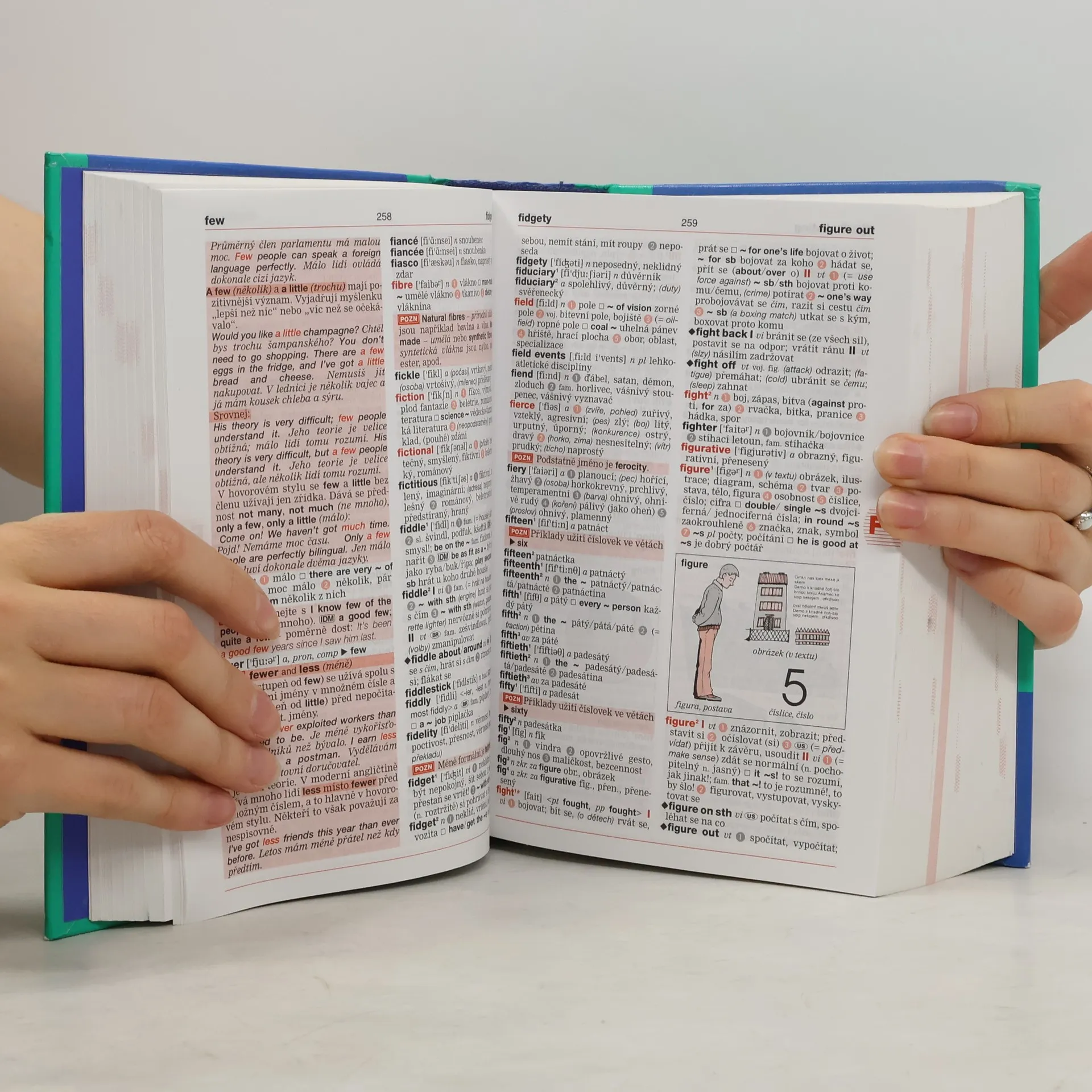 Téměř 50 tisíc hesel, slovních vazeb a frází, studiní poznámky, dvoubarevné ilustrace, anglická výslovnost v obou částech.