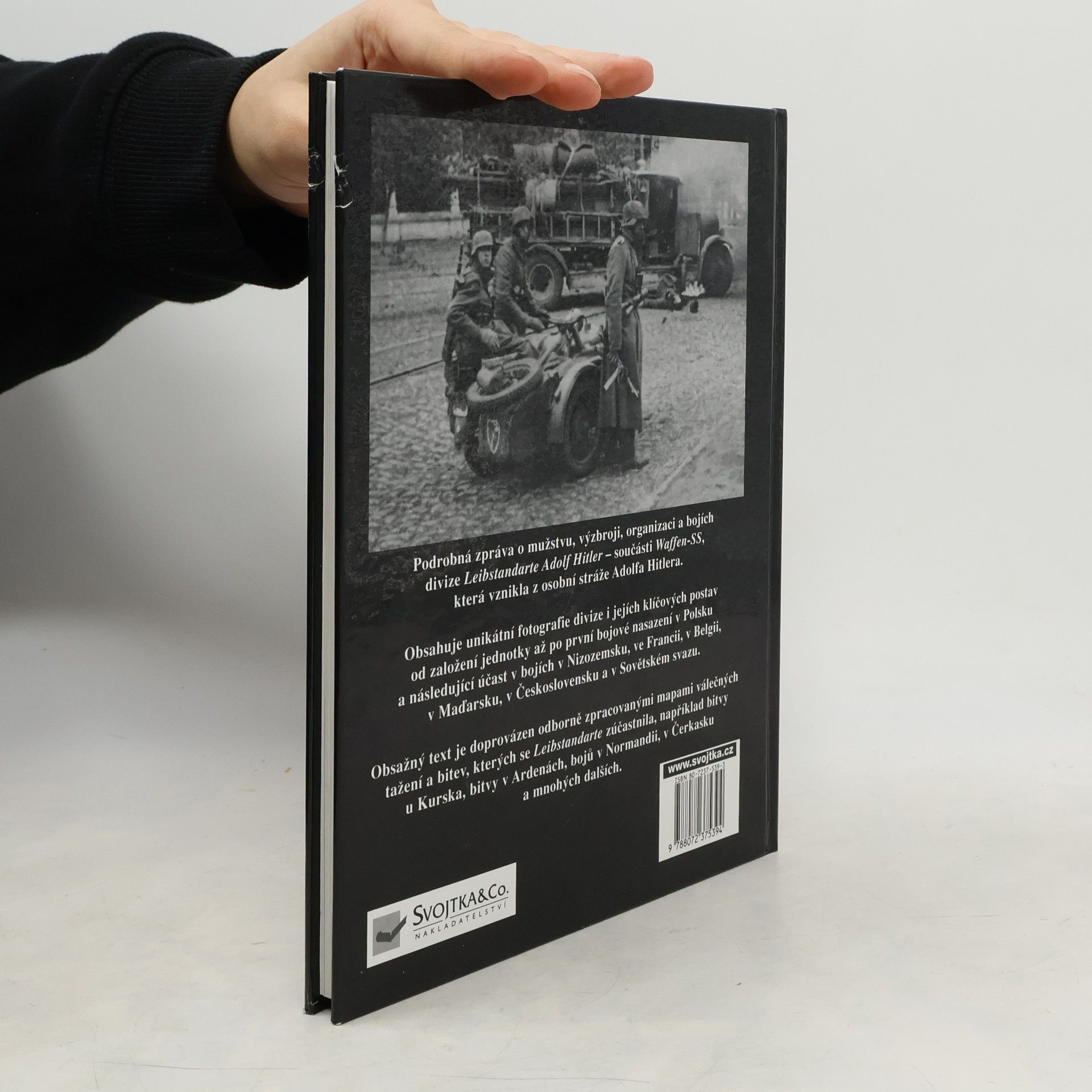Podrobná zpráva o mužstvu, výzbroji, organizaci a bojích divize Leibstandarte Adolf Hitler - součástí Waffen-SS, která vznikla z osobní stráže Adolfa Hitlera. Obsahuje unikátní fotografie divize i jejích klíčových postav od založení jednotky až po první bojové nasazení v Polsku a následující účast v bojích v Nozizemsku, ve Francii, v Belgii, v Maďarsku, v Československu a v Sovětském svazu. Obsažný text je doprovázen odborně zpracovanými mapami válečných tažení a bitev, kterých se Leibstandarte zůčastnila, například bitvy u Kurska, bitvy v Ardenách, bojů v Normandii, v Čerkasku a mnohých dalších.