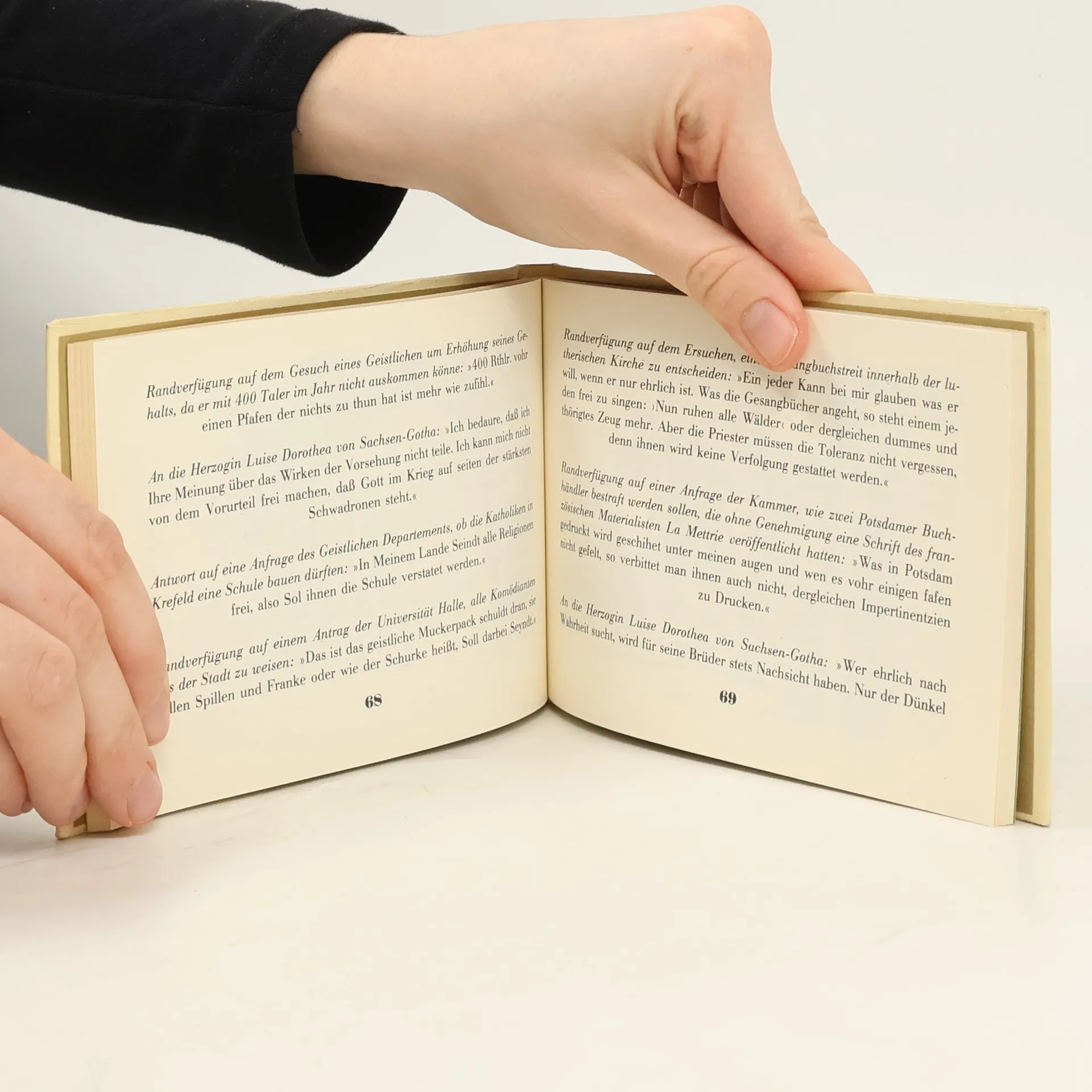Friedrich II. war eine Ausnahme unter den Königen seiner Zeit. Wo fand man einen Monarchen, der wie ein Eremit lebte? Der aufstand, wenn andere Herrscher zu Bett gingen? Der sein Vergnügen nicht im Ballsaal oder am Spieltisch, sondern in der Unterhaltung und in der Erfüllung seiner Pflichten sah? Es gehörte auch zu den Eigenheiten des friderizianischen Regierungsstils, daß alles über seinen Schreibtisch ging - das Wichtige wie das Unwichtige, das Ernste wie das Lächerliche. Die Verfügungen, die Friedrich an den Rand der Akten kritzelte, die Kabinettsordern und Briefe sind eine fesselnde Lektüre. Sie zeigen einen klugen, pragmatischen Kopf, dem niemand ein X für ein U vormachte, einen Denker von sprachlicher Originalität und manchmal geistreicher Bosheit.