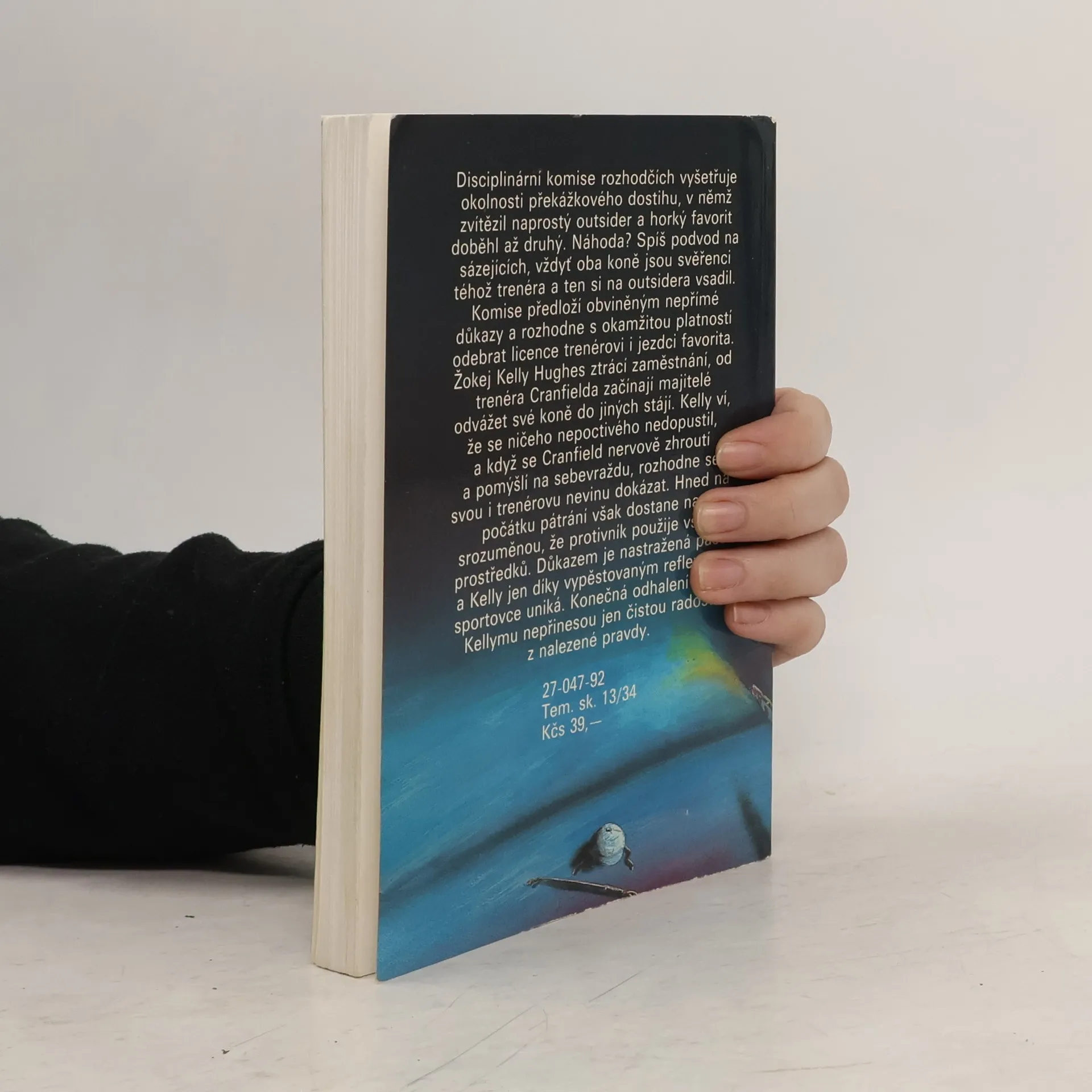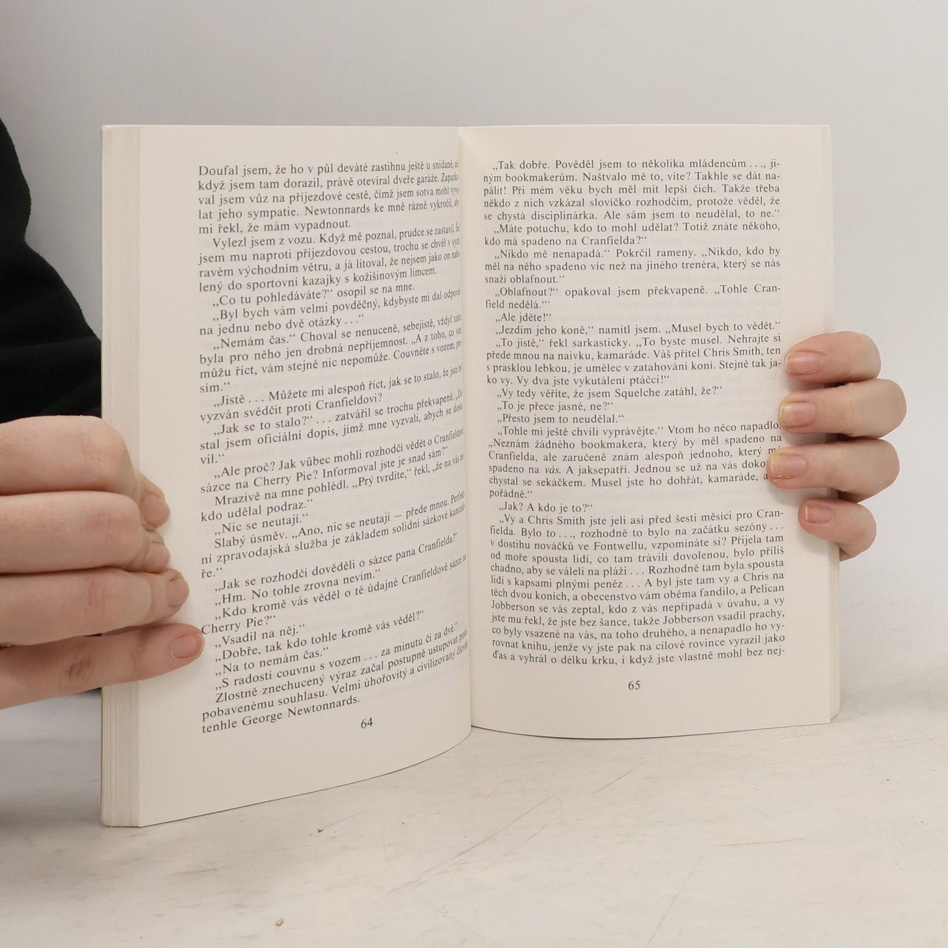 Disciplinární komise rozhodčích vyšetřuje okolnosti překážkového dostihu, v němž zvítězil naprostý outsider a horký favorit doběhl až druhý. Náhoda? Spíš podvod na sázejících, vždyť oba koně jsou svěřenci téhož trenéra a ten si na outsidera vsadil. Komise předloží obviněným nepřímé důkazy a rozhodne s okamžitou platností odebrat licence trenérovi i jezdci favorita. Žokej Kelly Hughes ztrácí zaměstnání, od trenéra Cranfielda začínají majitelé odvážet své koně do jiných stájí. Kelly ví, že se ničeho nepoctivého nedopustil, a když se Cranfield nervově zhroutí a pomýšlí na sebevraždu, rozhodne se svou i trenérovu nevinu dokázat. Hned na počátku pátrání však dostane na srozuměnou, že protivník použije všech prostředků. Důkazem je nastražená past a Kelly jen díky vypěstovaným reflexům sportovce uniká. Konečná odhalení však Kellymu nepřinesou jen čistou radost z nalezené pravdy. (nakladatel)... celý text