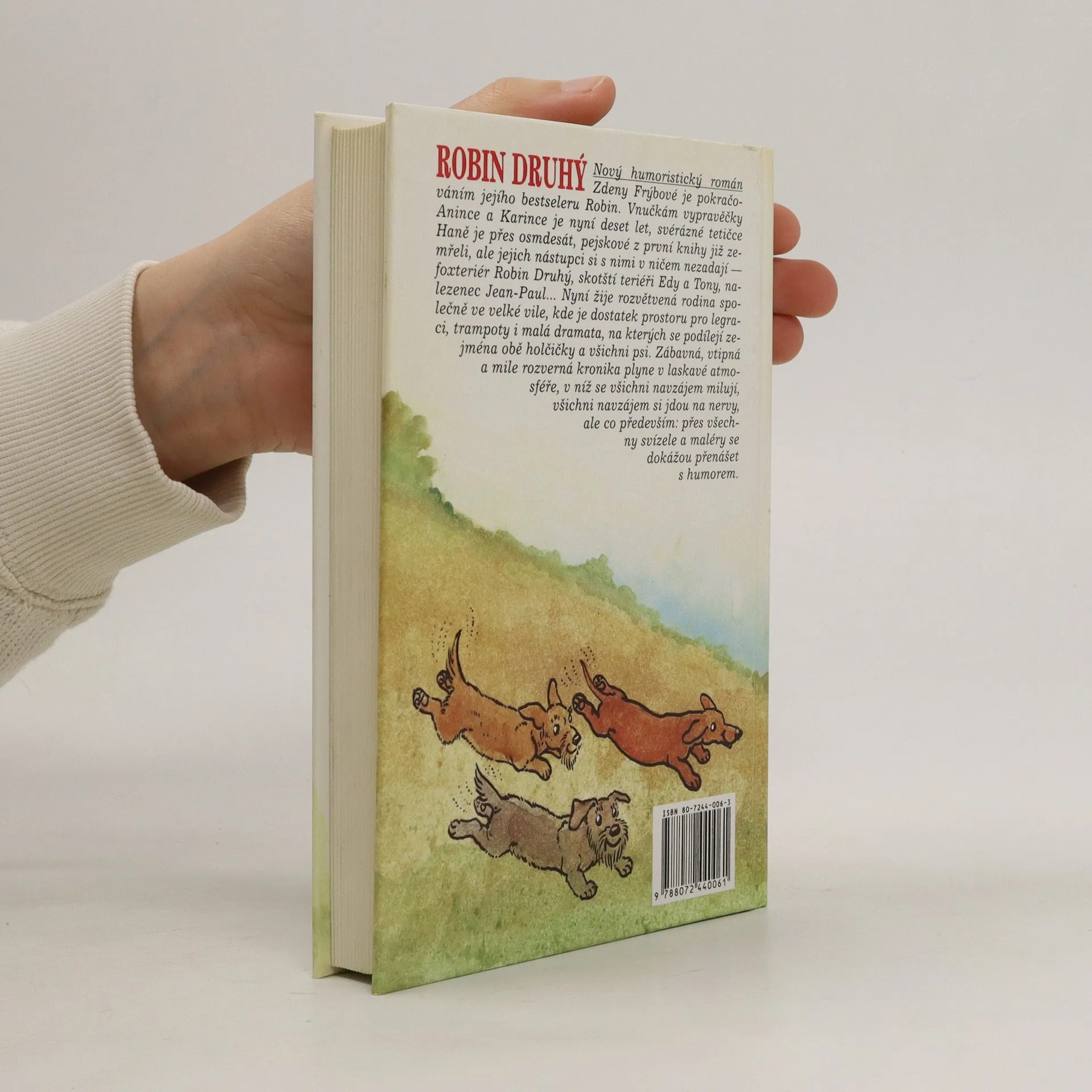 Robin druhý je pokračováním bestseleru Robin. Vnučkám vypravěčky Anince a Karince je nyní deset let, svérázné tetičce Haně je přes osmdesát, pejskové z první knihy již zemřeli, ale jejich nástupci si s nimi v ničem nezadají - foxteriér Robin Druhý, skotští teriéři Edy a Tony, nalezenec Jean-Paul.. Nyní žije rozvětvená rodina společně ve velké vile, kde je dostatek prostoru pro legraci, trampoty i malá dramata, na kterých se podílejí zejména obě holčičky a všichni psi. Zábavná, vtipná a mile rozverná kronika plyne v laskavé atmosféře, v níž se všichni navzájem milují, všichni navzájem si jdou na nervy, ale co především: přes všechny svízele a maléry se dokážou přenášet s humorem.