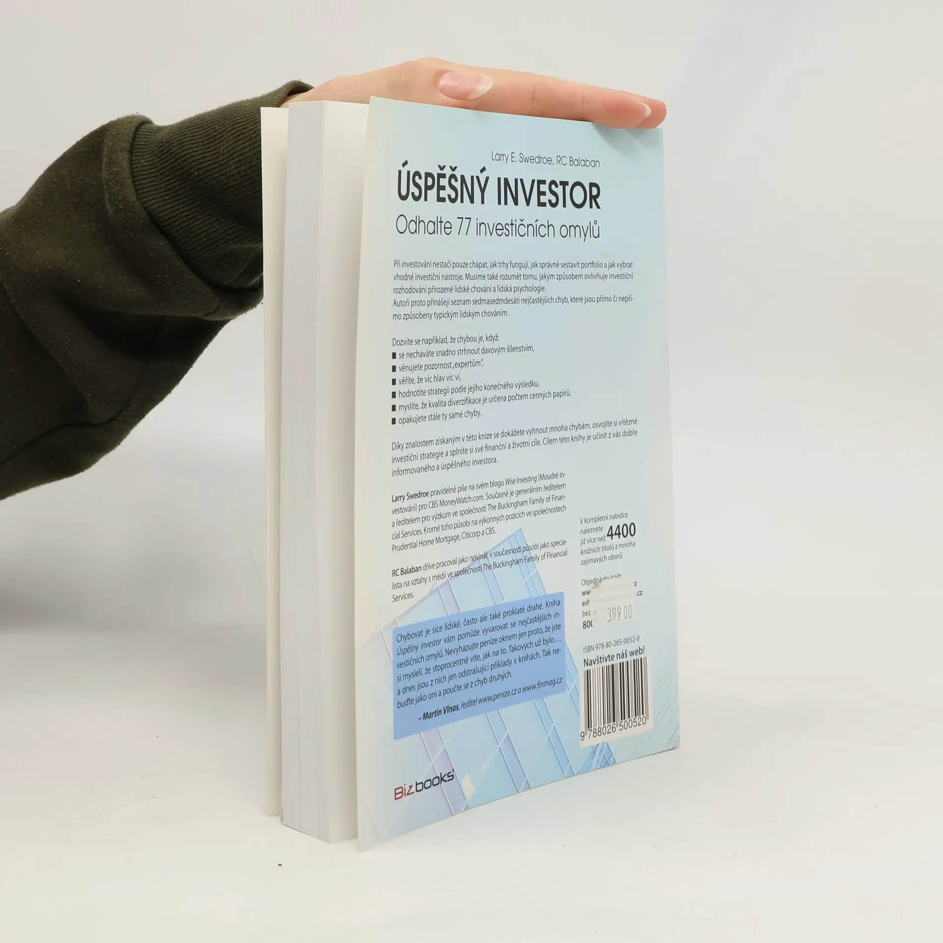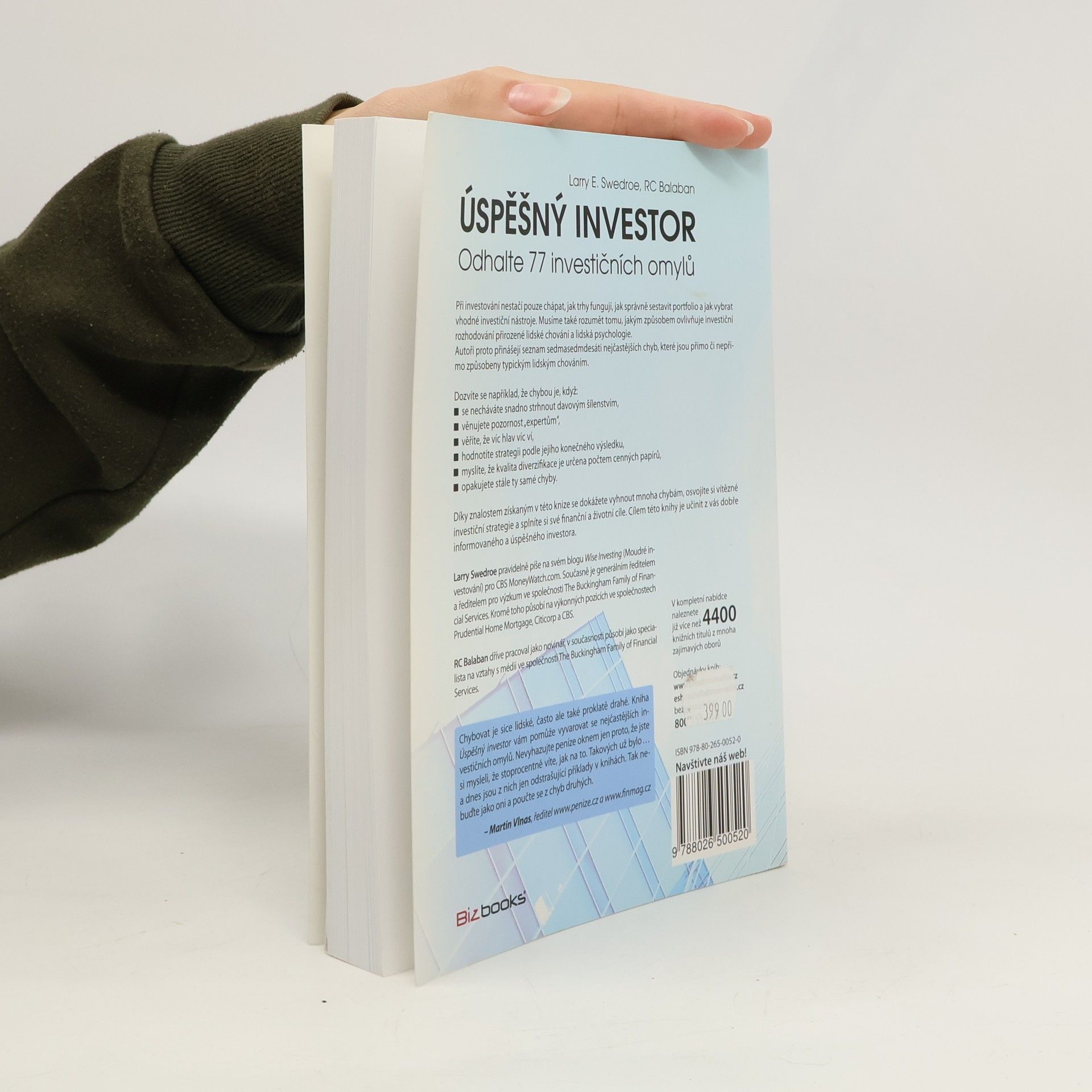 Při investování nestačí chápat trhy, sestavit portfolio a vybrat investiční nástroje; klíčové je také porozumět vlivu lidského chování a psychologie na investiční rozhodování. Mnozí investoři, bez dostatečného formálního vzdělání, se spoléhají na hluboce zakořeněné názory, které mohou být mylné, což vede k katastrofálním chybám. Larry Swedroe, s patnáctiletou zkušeností jako předseda a ředitel výzkumu ve společnosti Buckingham Family of Financial Services, byl svědkem mnoha chyb, které stály investory značné peníze. Tyto chyby pramení z lidských vlastností, jako je nadměrné sebevědomí, které může vést k přehnanému riziku. Autoři představují seznam sedmasedmdesáti nejčastějších chyb, ovlivněných typickým lidským chováním. Mezi tyto chyby patří například snadné podléhání davovému šílenství, důvěra v „experty“, hodnocení strategie podle konečného výsledku, nebo mylné přesvědčení, že kvalita diverzifikace závisí na počtu cenných papírů. Získané znalosti vám pomohou vyhnout se mnoha chybám, osvojit si úspěšné investiční strategie a dosáhnout svých finančních cílů. Cílem je stát se dobře informovaným investorem.
