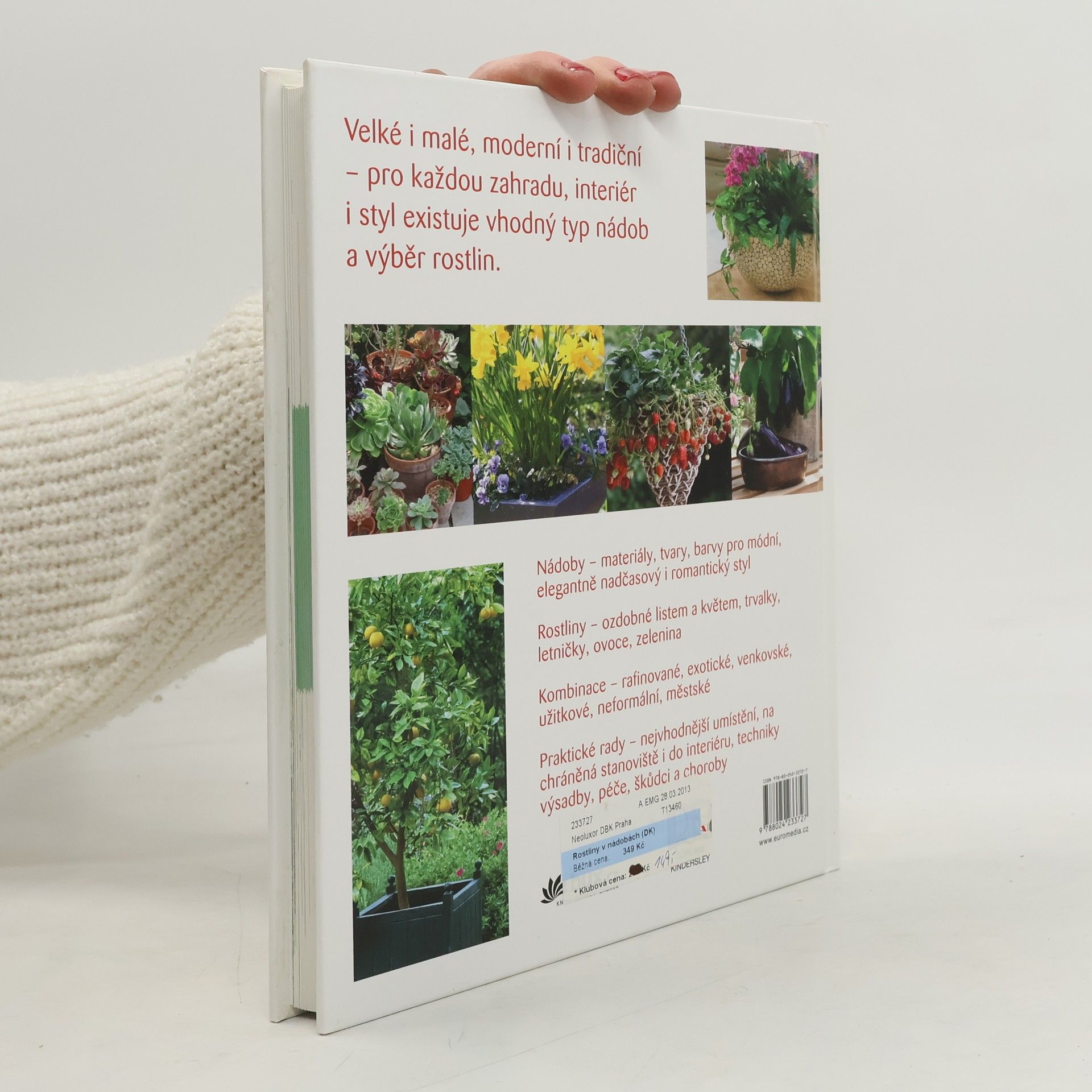 Tato kniha nabízí inspiraci pro dům, balkon i terasu. Představuje výběr vhodných rostlin, nádob i kombinací pro nejrůznější kompozice od moderních, elegantních, módních přes klasické a nadčasové až po tradiční a rustikální. Ukáže vám, jak sladit nádoby různých tvarů a barev s rostlinami ozdobnými listem a květem, a dozvíte se řadu praktických rad od nejvhodnějšího umístění podle všech typů stanovišť, přes techniky výsadby a péči až po nejčasnější škůdce a choroby, které mohou rostliny ohrozit.