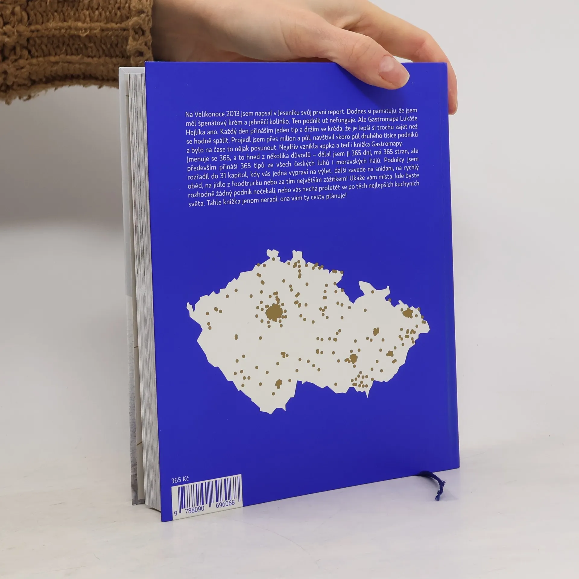 Jmenuje se 365, a to hned z několika důvodů – dělal jsem ji 365 dní, má 365 stran, ale především přináší 365 tipů ze všech českých luhů i moravských hájů. Podniky jsem rozřadil do 31 kapitol, kdy vás jedna vypraví na výlet, další zavede na snídani, na rychlý oběd, na jídlo z foodtrucku nebo za tím největším zážitkem! Ukáže vám místa, kde byste rozhodně žádný podnik nečekali, nebo vás nechá proletět se po těch nejlepších kuchyních světa. Tahle knížka jenom neradí, ona vám ty cesty plánuje!
