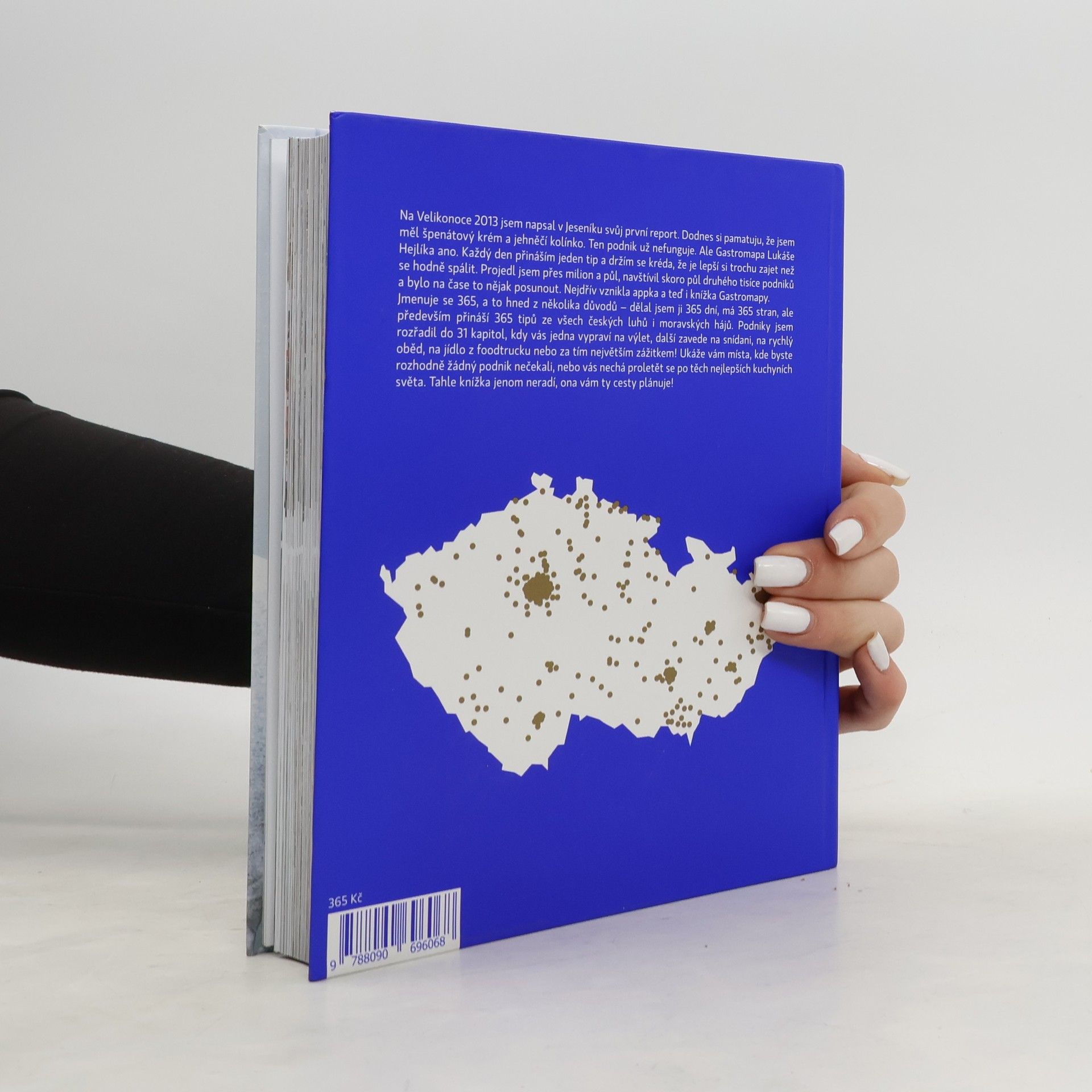 Jmenuje se 365, a to hned z několika důvodů – dělal jsem ji 365 dní, má 365 stran, ale především přináší 365 tipů ze všech českých luhů i moravských hájů. Podniky jsem rozřadil do 31 kapitol, kdy vás jedna vypraví na výlet, další zavede na snídani, na rychlý oběd, na jídlo z foodtrucku nebo za tím největším zážitkem! Ukáže vám místa, kde byste rozhodně žádný podnik nečekali, nebo vás nechá proletět se po těch nejlepších kuchyních světa. Tahle knížka jenom neradí, ona vám ty cesty plánuje!