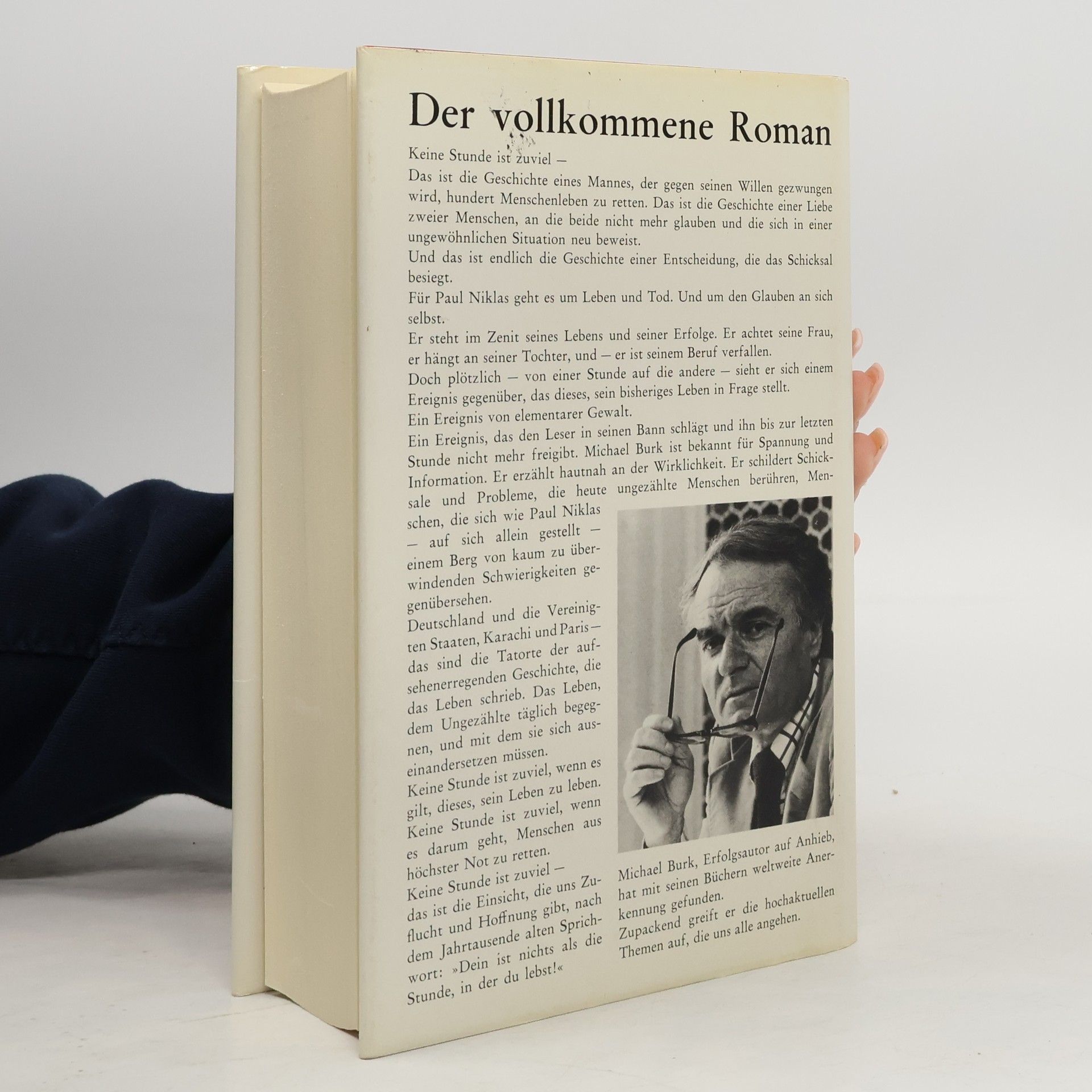 Keine Stunde ist zu viel »Der vollkommene Roman« schrieb DIE ZEIT zum Erscheinen. Paul Niklas, erfolgreicher Herzchirurg, erlebt bei einer spektakulären Operation einen Schwächeanfall – und zum zweiten Mal in seinem Leben fühlt er sich schuldig am Tod eines Menschen. Doch obwohl niemand vom ersten Fall weiß und auch keiner ihm jetzt eine Schuld gibt, beschließt er, seine Arztkarriere an den Nagel zu hängen. Plötzlich findet er sich jedoch als entscheidende Figur im Entführungsfall des PAN AM Jumbo-Jets in Damaskus wieder – hin- und hergerissen zwischen Regierung, CIA, der palästinensischen Befreiungsgruppe AWT und seinen eigenen Grundsätzen. Schließlich geht es um das Leben des AWT Führers Abu Dschafar – und davon hängt nicht nur das Leben der 184 Geiseln ab, sondern auch das von Paul Niklas – und seiner Tochter. Deutschland und die Vereinigten Staaten, Karachi und Paris – das sind die Tatorte der aufsehenerregenden Geschichte. Die Presse über Michael Burks Romane »Burk kennt sich in den Grundregeln der Spannungstechnik aus.« Der Spiegel »Ein Produkt, das der vollkommene Roman genannt werden darf.« Die Zeit »Wer packende Unterhaltung schätzt, wird sicher nicht enttäuscht.« Nürnberger Nachrichten »Mitreißend und packend von der ersten bis zur letzten Seite.« Bücherschau Wien »Burk hat bei Fachleuten recherchiert« Weltwoche, Zürich »Geschickt, glänzend, spannend und abgewogen.« Aufbau, New York