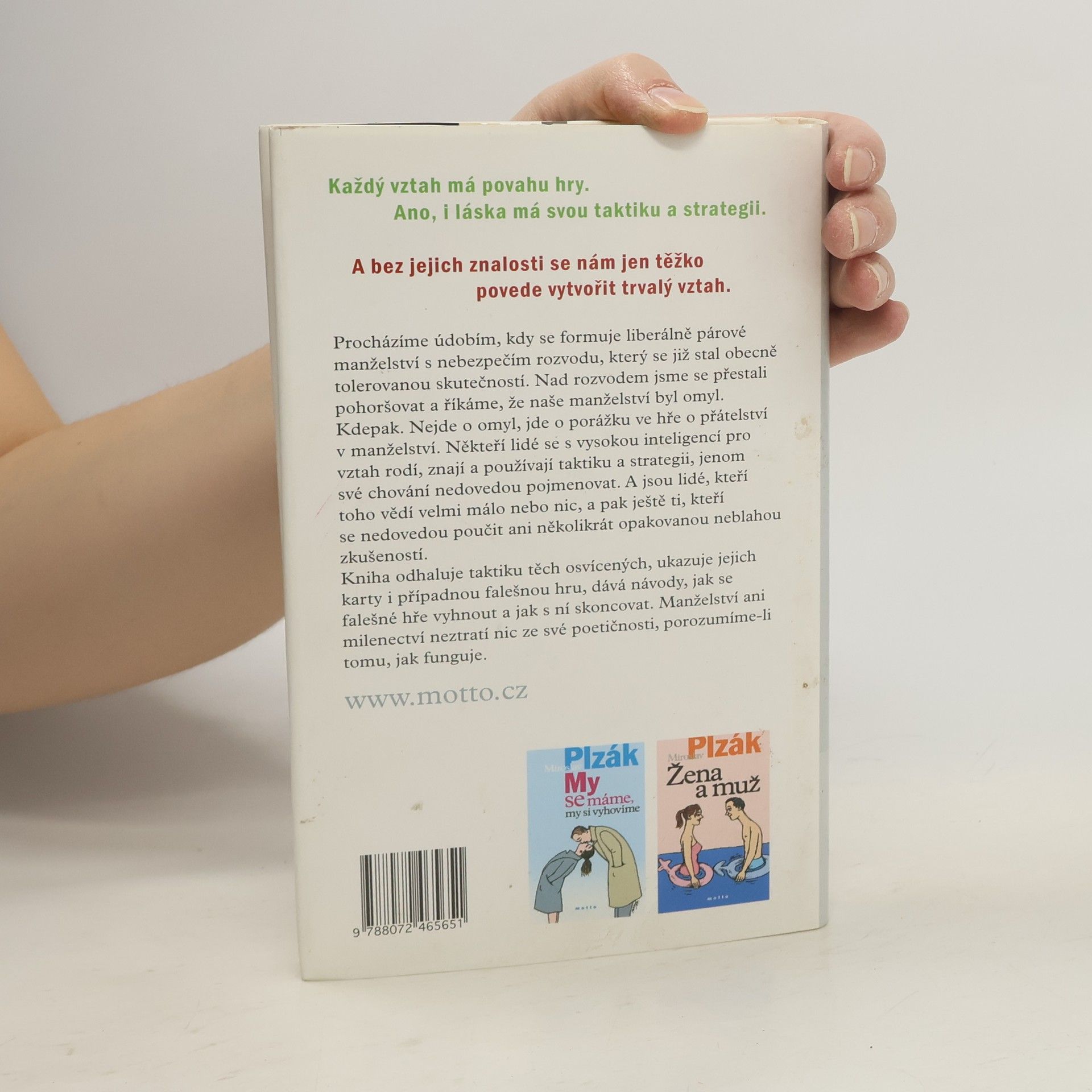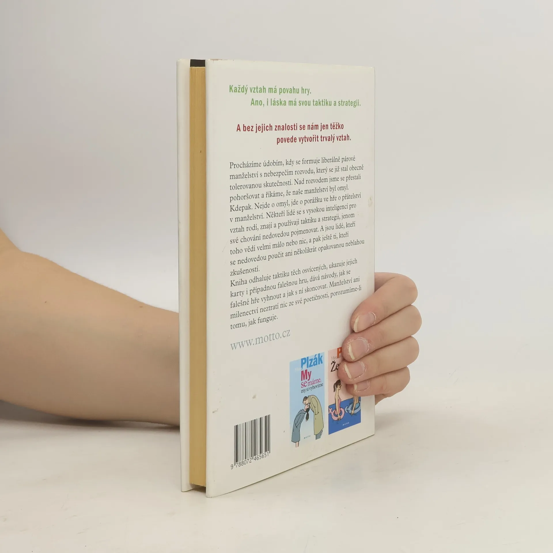 Každý vztah má povahu hry. Ano, i láska má svou taktiku a strategii. A bez jejich znalosti se nám jen těžko povede vytvořit trvalý vztah. Procházíme údobím, kdy se formuje liberálně párové manželství s nebezpečím rozvodu, který se již stal obecně tolerovanou skutečností. Nad rozvodem jsme se přestali pohoršovat a říkáme, že naše manželství byl omyl. Kdepak. Nejde o omyl, ale jde totiž o porážku ve hře o přátelství v manželství. Někteří lidé se s vysokou inteligencí pro vztah rodí, znají a používají taktiku i strategii, jenom své chování nedovedou pojmenovat. A jsou lidé, kteří toho vědí velmi málo, nebo nic, a pak ještě ti, kteří se nedovedou poučit ani několikrát opakovanou neblahou zkušeností. Kniha odhaluje taktiku těch osvícených, ukazuje jejich karty i případnou falešnou hru, dává návody, jak se falešné hře vyhnout a jak s ní skoncovat. Ani manželství, ani milenectví neztratí nic ze své poetičnosti, porozumíme-li tomu, jak funguje. 4. vydání