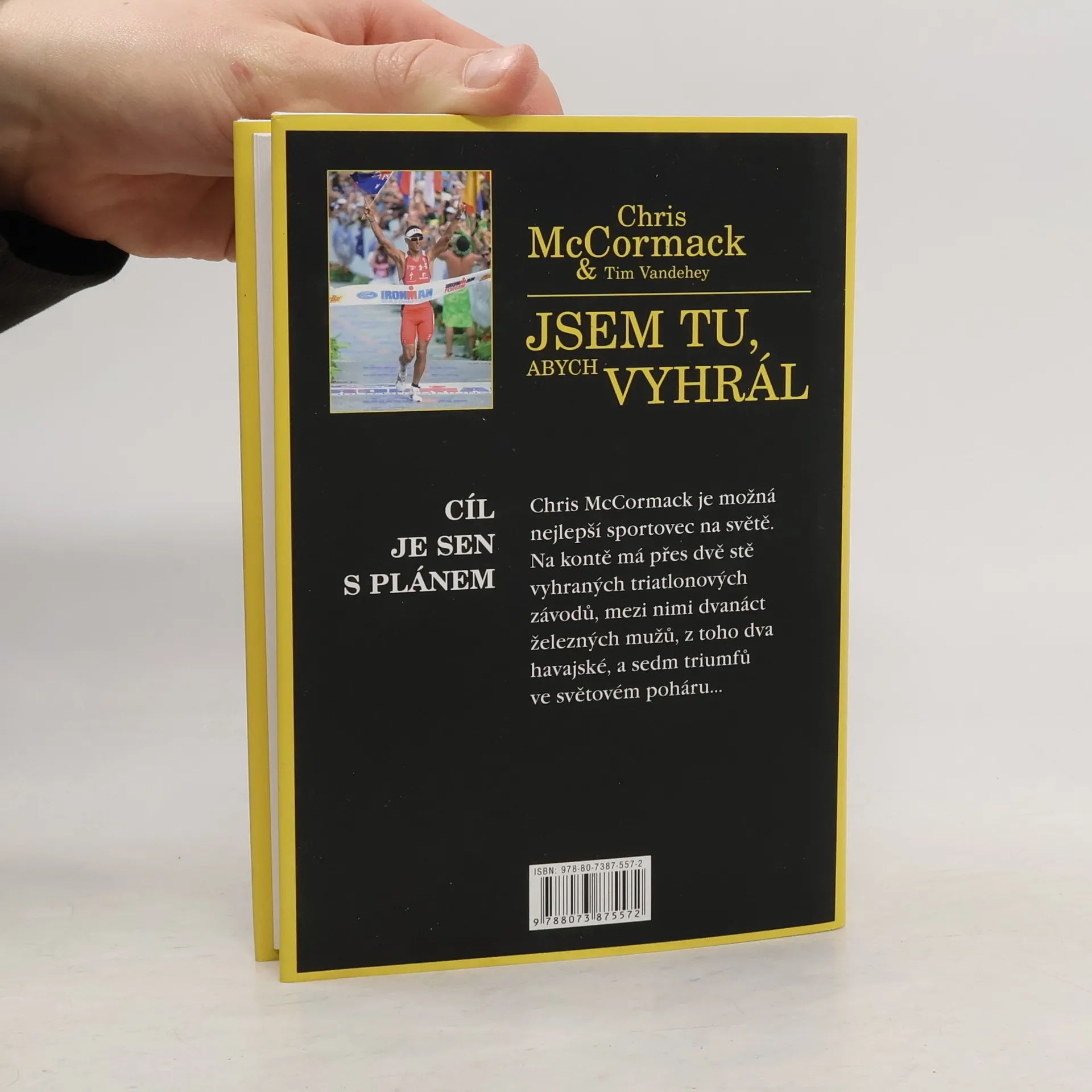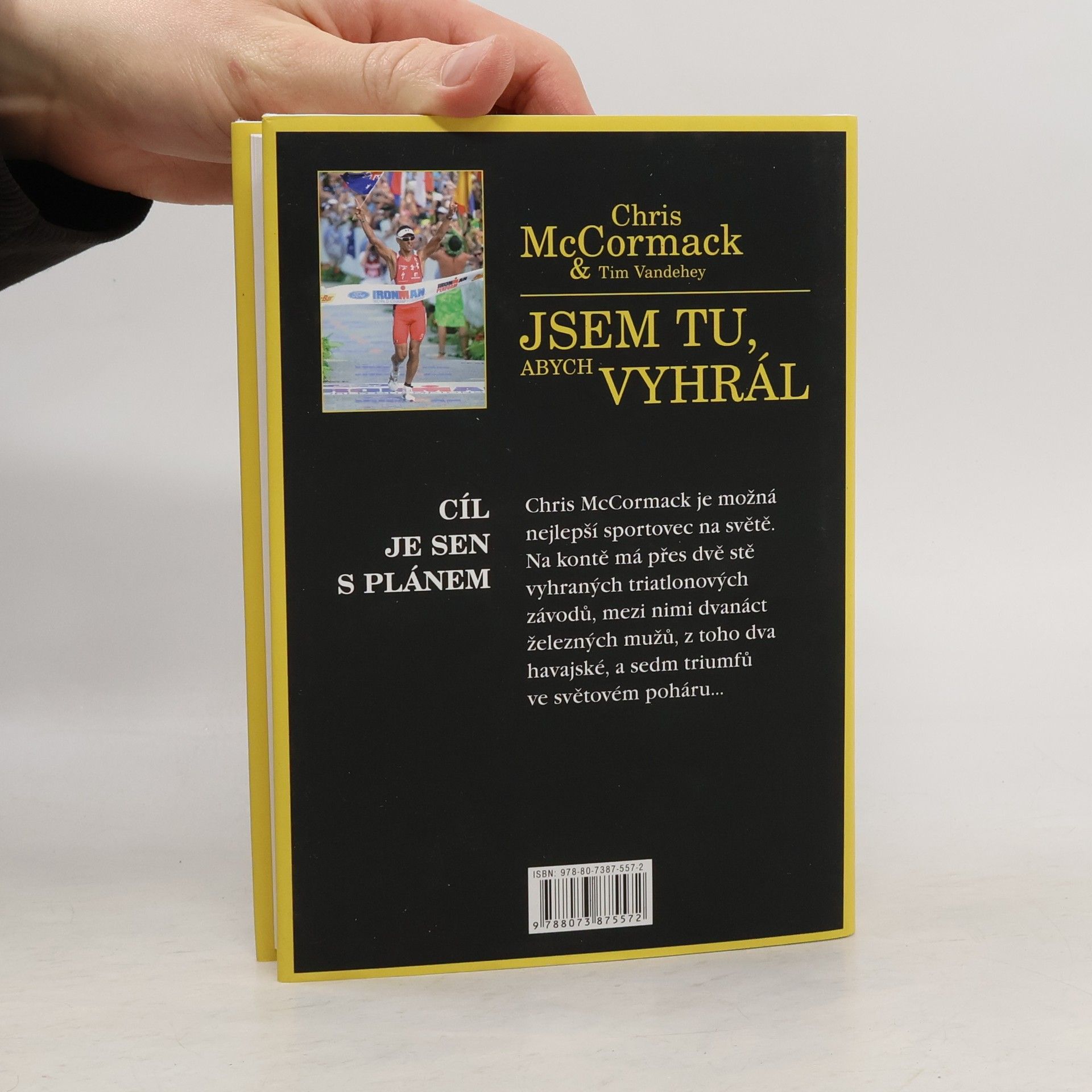 Australský triatlonista Chris McCormack, jeden z nejlepších sportovců na světě, zasvětil svůj život trénování a vítězství v jedné z nejnáročnějších zkoušek psychické a fyzické odolnosti na světě. Účastníci musejí uplavat bezmála čtyři kilometry, ujet na kole 180 km a uběhnout maraton, tj. 42,195 km.V roce 2010, ve věku třiceti sedmi let, podruhé zvítězil v mistrovství světa železných mužů v havajské Koně. Na kontě má přes 200 vyhraných triatlonových závodů, mezi nimi dvanáct železných mužů, a sedm triumfů ve světovém poháru… V tomto životopisném díle přibližuje zákulisí nejúspěšnější kariéry v dějinách triatlonu. Rozebírá všechno, co je potřeba zapojit, když se chcete stát šampionem, popisuje své triumfy a prozrazuje, co za nimi stojí a čím to, že je nejúspěšnější triatlonista na světě. Jeho tajemství ohledně trénování, hydratace a stravování v době závodů jsou informace, jaké byste jinde sháněli stěží. Navíc odkrývá své psychologické strategie vedoucí k úspěchu. Je to tedy návod pro každého, kdo hledá jak ve sportovním, tak osobním životě cestu na vrchol. Jak v předmluvě poznamenal jeho předchůdce, nejúspěšnější triatlonista 90. let Mark Allen, od tohoto nevšedního příběhu neodtrhnete oči.