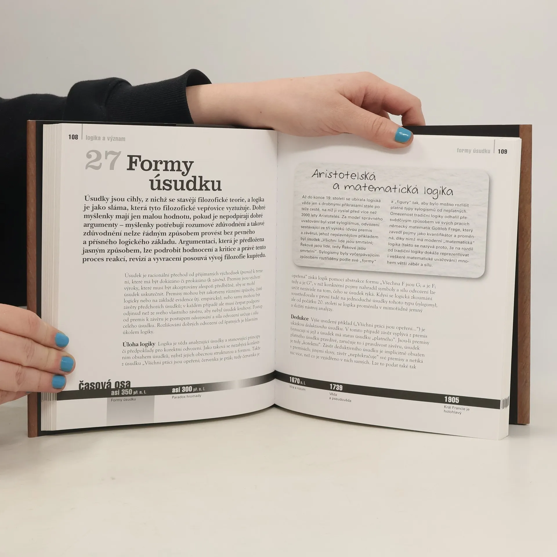 Soubor padesáti čtivých a srozumitelně napsaných esejů představuje a vysvětluje problémy poznání, vědomí, identity, etiky, víry, spravedlnosti, jazyka, významu a estetiky, které zaměstnávají myslitele od dob starověkého Řecka až po současnost. Zabývá se otázkou, co je umění, co se skrývá za větou Cogito ergo sum, zabývá se problémy zla a mysli druhých, Platónovým podobenstvím o jeskyni, paradoxem holiče, argumentem svobodné vůle, otázkami Théseovy lodi, Occamovy břitvy, teoriemi mozku v kádi a brouka v krabičce, pojmem spravedlivá válka, teorií božího nařízení a mnoha dalšími nadčasovými tématy. Demystifikující a zábavná kniha je pro laického čtenáře ideálním úvodem do západní filozofie. Autor má opravdové nadání pro populární výklad často obtížných a provokativních filozofických otázek.