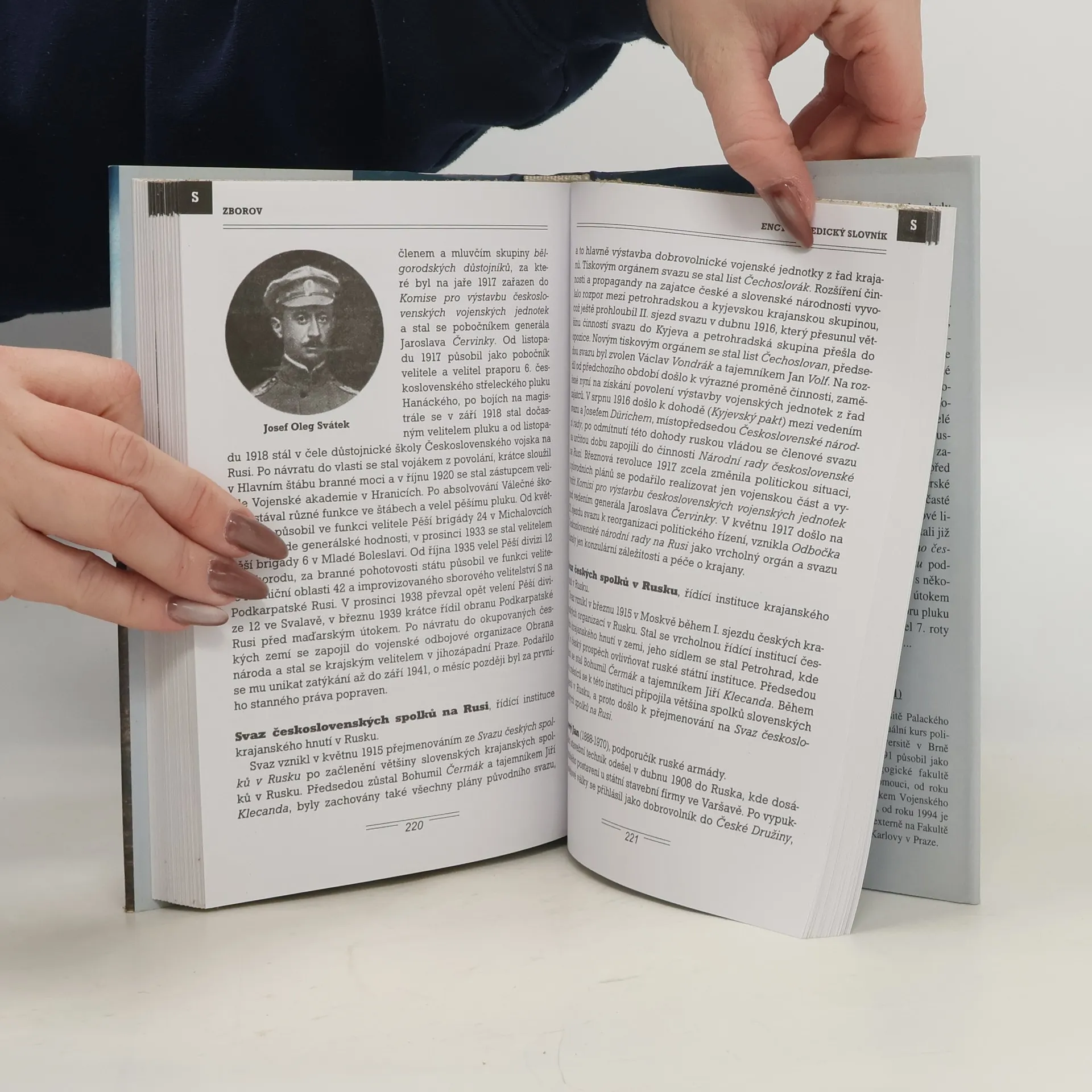 Podtitul knihy : Malý encyklopedický slovník. První část knihy popisuje české a slovenské krajanské hnutí, politický exil a domácí politiku za 1. světové války, průběh vznikání vojenských jednotek dobrovolníků v Rusku a jejich zapojení do válečných akcí. Zmiňuje politické souvislosti bitvy u ukrajinské obce Zborov. Zde zaútočila 2. července 1917 Československá střelecká brigáda v rámci ruské ofenzivy na postavení rakousko-uherské armády a v krátkém časovém úseku nečekaně dosáhla značného úspěchu. Bitva u Zborova je tak právem označována za bod zlomu v československém odboji, neboť potvrdila oprávněnost své existence a otevřela cestu výstavbě dalších vojenských jednotek. Druhá část knihy obsahuje encyklopedický slovník s více než třemi sty hesly a s doprovodnými fotografiemi se zborovskou tématikou. Jedno z nejvýznamnějších bojových střetnutí v českých vojenských dějinách 20. století je dosti stranou zájmu odborné či laické veřejnosti, neboť poslední monotematická publikace byla vydána v roce 1947. První vydání.