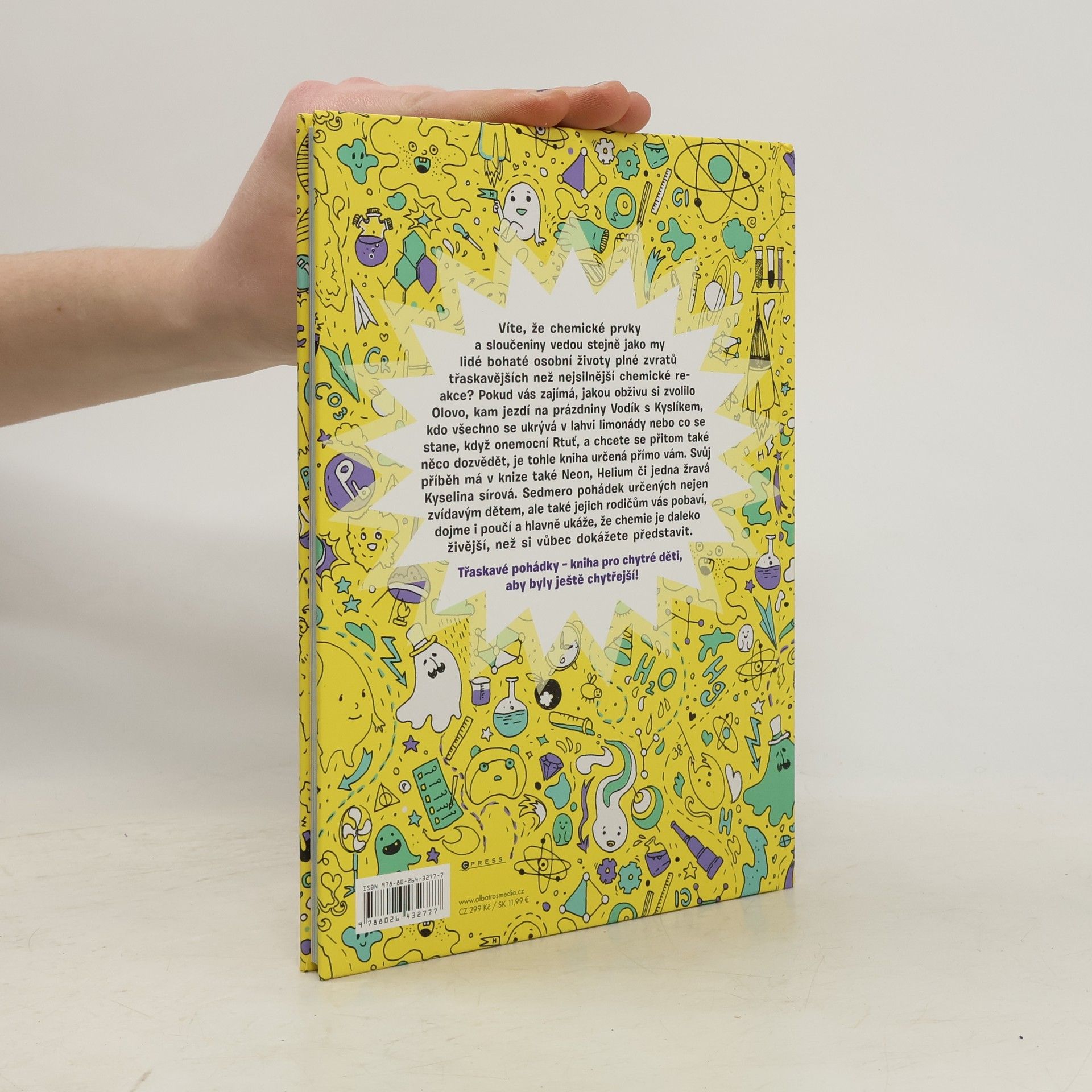 Víte, že chemické prvky a sloučeniny vedou stejně jako my lidé bohaté životy plné zvratů třaskavějších než nejsilnější chemické reakce? Pokud vás zajímá, jakou obživu si zvolilo Olovo, kam jezdí na prázdniny Vodík s Kyslíkem, nebo co se stane, když onemocní Rtuť, a chcete se přitom i něco dozvědět, je tohle kniha určená přímo vám. Sedmero pohádek pobaví, dojme i poučí a hlavně ukáže, že chemie je daleko živější, než si vůbec dokážete představit.