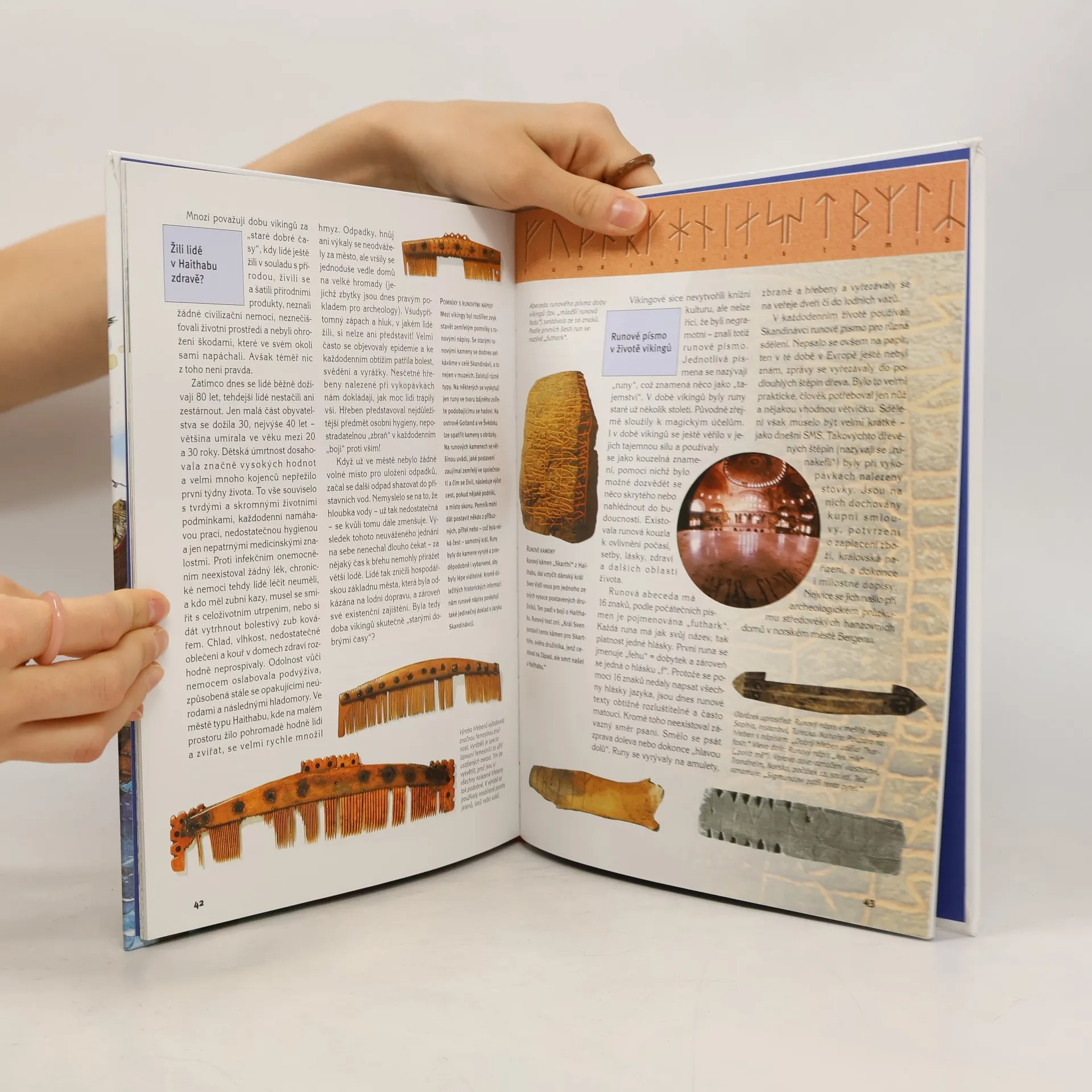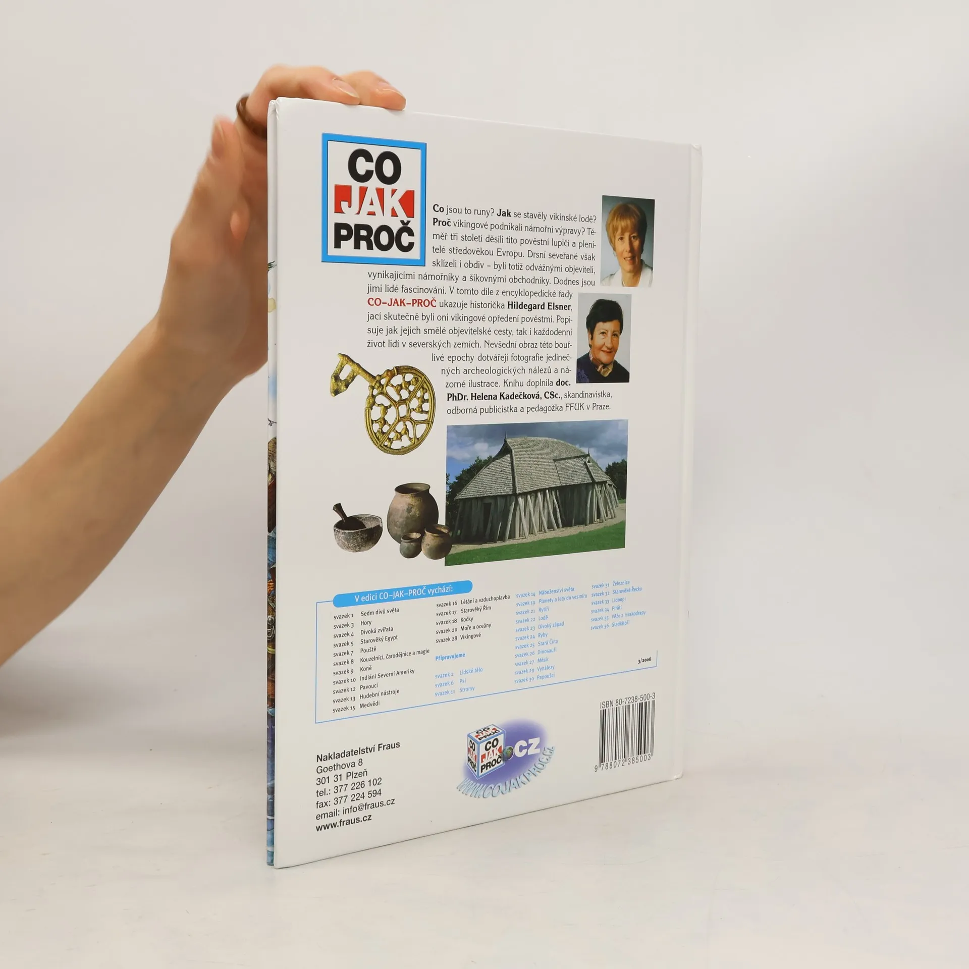 Co jsou to runy? Jak se stavěly vikinské lodě? Proč vikingové podnikali námořní výpravy? Téměř tři století děsili tito pověstní lupiči a plenitelé středověkou Evropu. Drsní seveřané však sklízeli i obdiv – byli totiž odvážnými objeviteli, vynikajícími námořníky a šikovnými obchodníky. Dodnes jsou jimi lidé fascinováni. Historička Hildegard Elsner ukazuje v tomto díle z encyklopedické řady CO–JAK–PROČ, jací skutečně byli oni vikingové opředení pověstmi. Popisuje jak jejich smělé objevitelské cesty, tak i každodenní život lidí v severských zemích. Nevšední obraz této bouřlivé epochy dotvářejí fotografie jedinečných archeologických nálezů a názorné ilustrace. Knihu doplnila doc. PhDr. Helena Kadečková, skandinavistka, odborná publicistka a pedagožka FFUK.