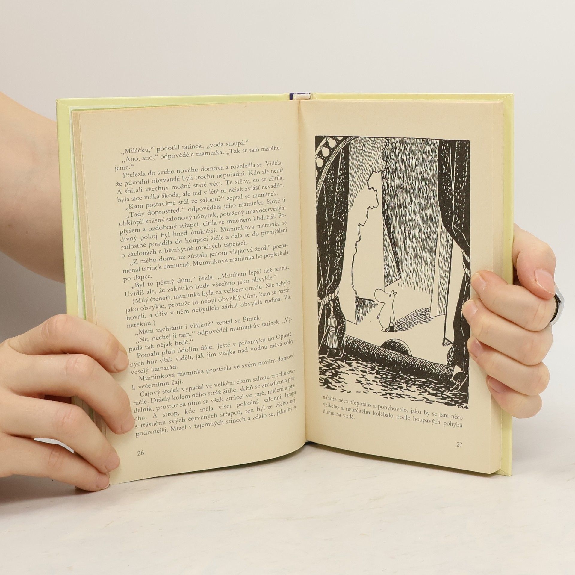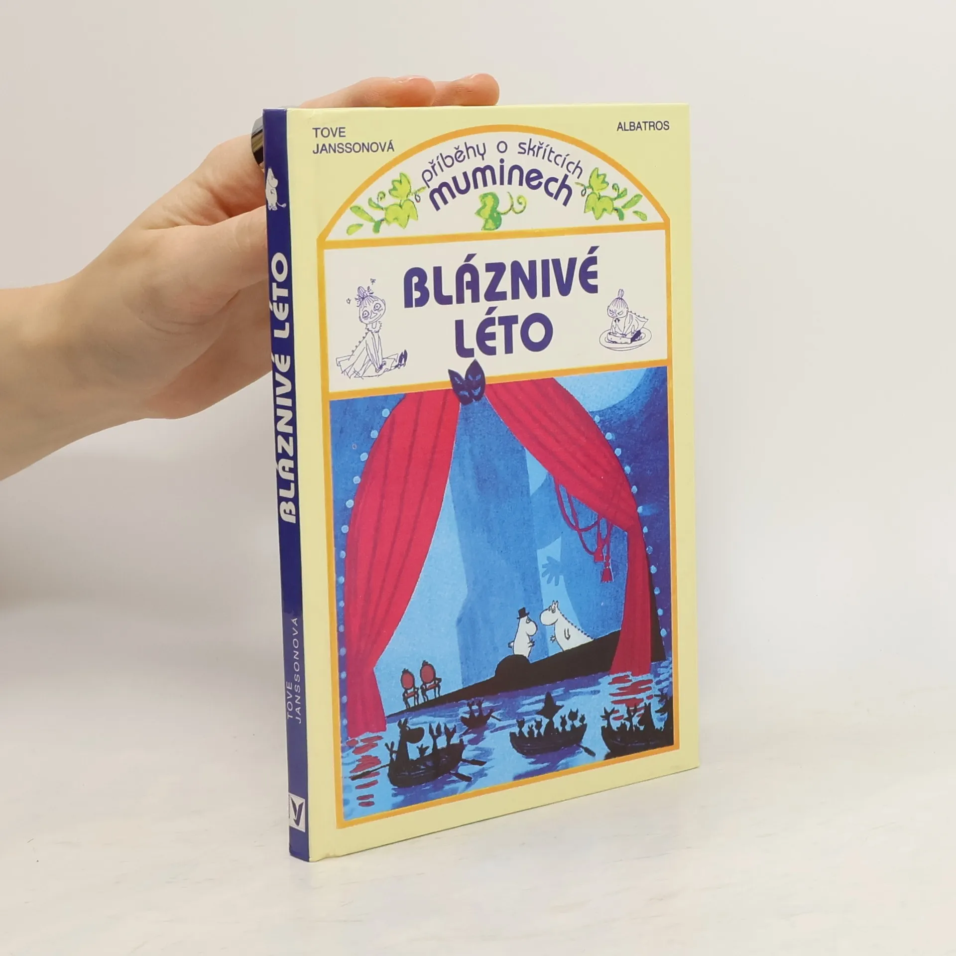 Nad muminím údolím se tyčí zdánlivě nečinná sopka. Jenže onoho léta začala dýmat a chrlit sazi za sazí. Během jediné noci popraskala zem a velká voda zaplavila údolí široko daleko. Ačkoliv mumínky připravila o jejich útulný domeček, nestýskají si a jdou (vlastně plují) vstříc novému dobrodružství. Šťastná náhoda jim přeje, bez přístřeší nezůstávají dlouho. Leč jaký tajuplný dům voda přinesla? Uvnitř se skrývá nespočet předmětů, které nejsou tím, čím se zdají být - dveře z papíru, ve vzduchu končící schody, jablka ze sádry. Až uražená krysa Ema jim prozradí, že se ocitli ve slavném divadle. Léto to bude hravé, vskutku víc než bláznivé.