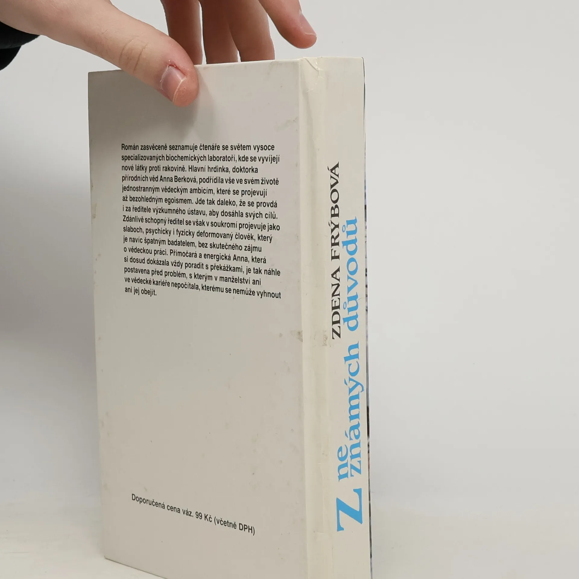 Román zavede čtenáře do světa vysoce specializovaných biochemických laboratoří, na půdu univerzit i na mezinárodní vědecké kongresy. Hrdinkou napínavého psychologického románu je ambiciózní vědecká pracovnice, která se blíží k světovému úspěchu v biochemickém výzkumu, zaměřeném také na vývoj nových léků proti rakovině. Doktorka přírodních věd Anna Berková je mimořádně inteligentní, činorodá, ve svém profesionálním zaujetí k okolí i bezohledná mladá žena, vzbuzující svými jednostrannými zájmy a egoismem někdy až antipatii. Naopak v citových vztazích je její duše již od dětství snadno zranitelná a Anně dlouho trvá, než se rozhodne vstoupit do manželství s ředitelem výzkumného ústavu, ve kterém pracuje. Její manžel se však projeví jako slaboch, kterého závist a komplexy dovedou až k absurdnímu morálnímu selhání. Přímočará a energická Anna si dosud vždy dokázala poradit se všemi překážkami, ve svém manželství však nyní stojí před problémem, který neumí vyřešit ani se mu nedokáže vyhnout. Manželské drama se rozvíjí v psychologicky napínavý příběh o složitosti citů, železné vůli a chladnokrevné odvaze jedné výjimečné ženy. Součástí tohoto 2. vydání je i předmluva pana Jana Škody, který se Zdenou Frýbovou řadu let spolupracoval právě na sérii obsáhlých odborných dialogů věnovaných pokrokům biochemie, biotechnologie a genového inženýrství.