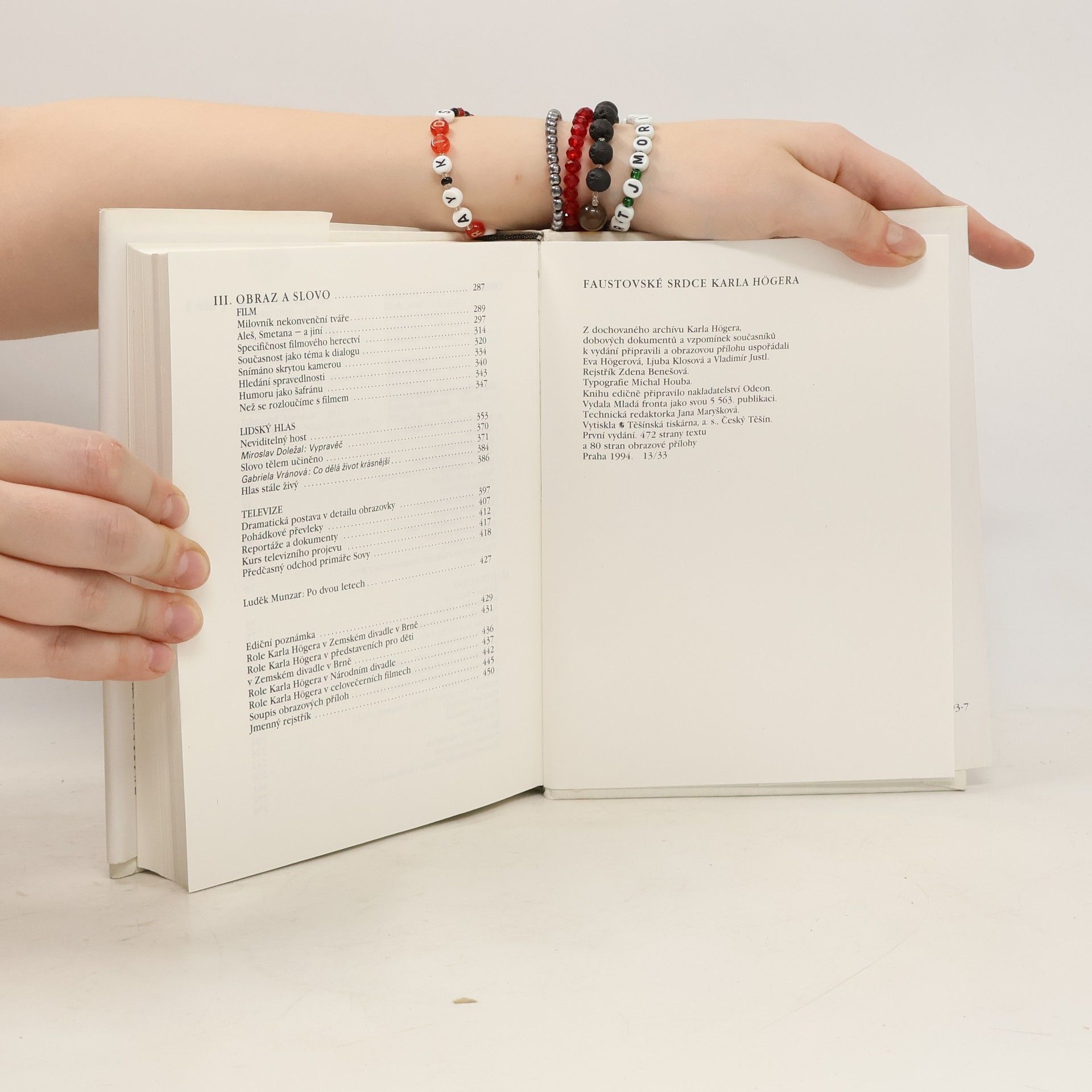 Biografie Karla Högera sestavená z dochovaného archivu Karla Högera, dobových dokumentů a vzpomínek současníků. Obsahuje také bohatou fotografickou přílohu (156 fotografií) a přehled rolí Karla Högera v divadle i filmu.
